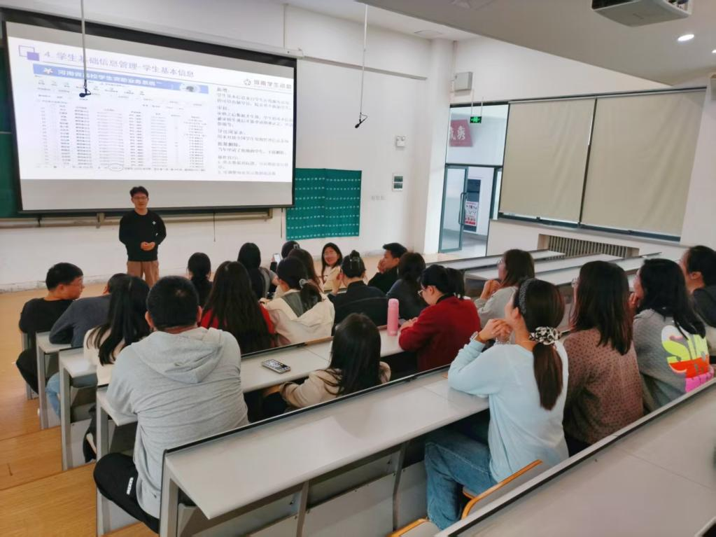 资助专员吴彦举结合校学生资助中心下发的学生信息完善、辅导员操作指南、河南省高校学生资助管理信息系统应用PPT、高校助学贷款学生在线注册和申请PPT、高校助学贷款业务系统应用PPT、国家奖助学金材料填报常见问题PPT、服兵役国家教育资助政策解读PPT等相关资料,与辅导员进行了共同探讨和问题解答,有效的提升了辅导员的工作能力。