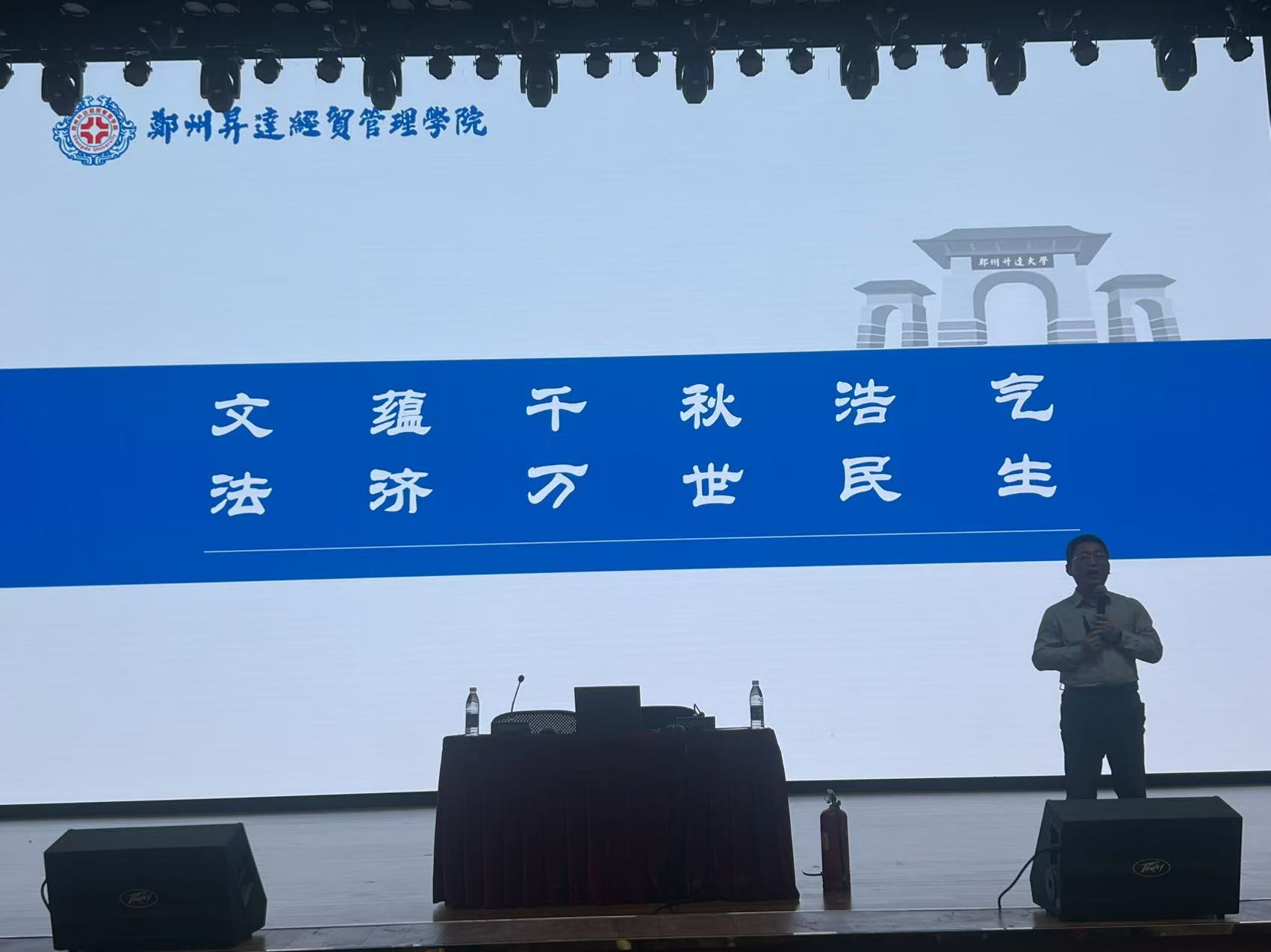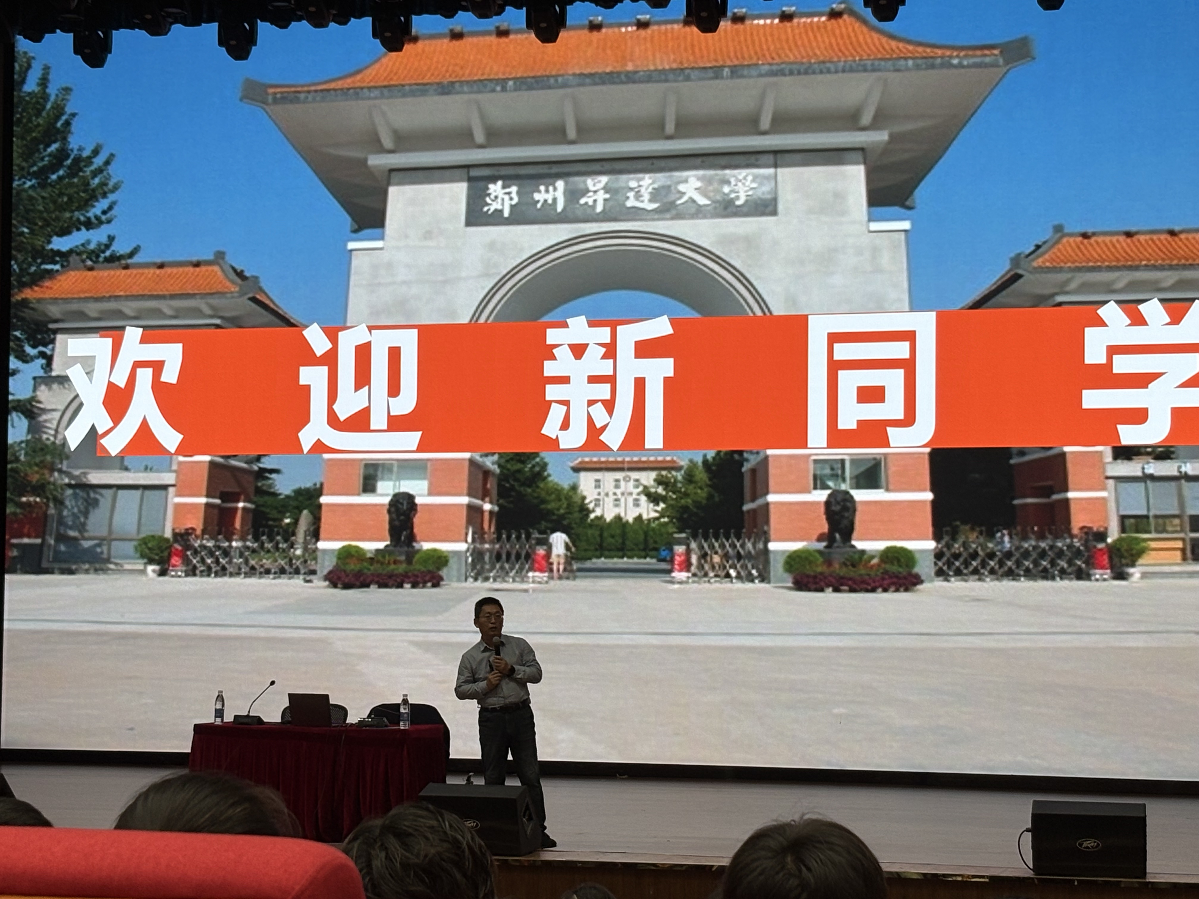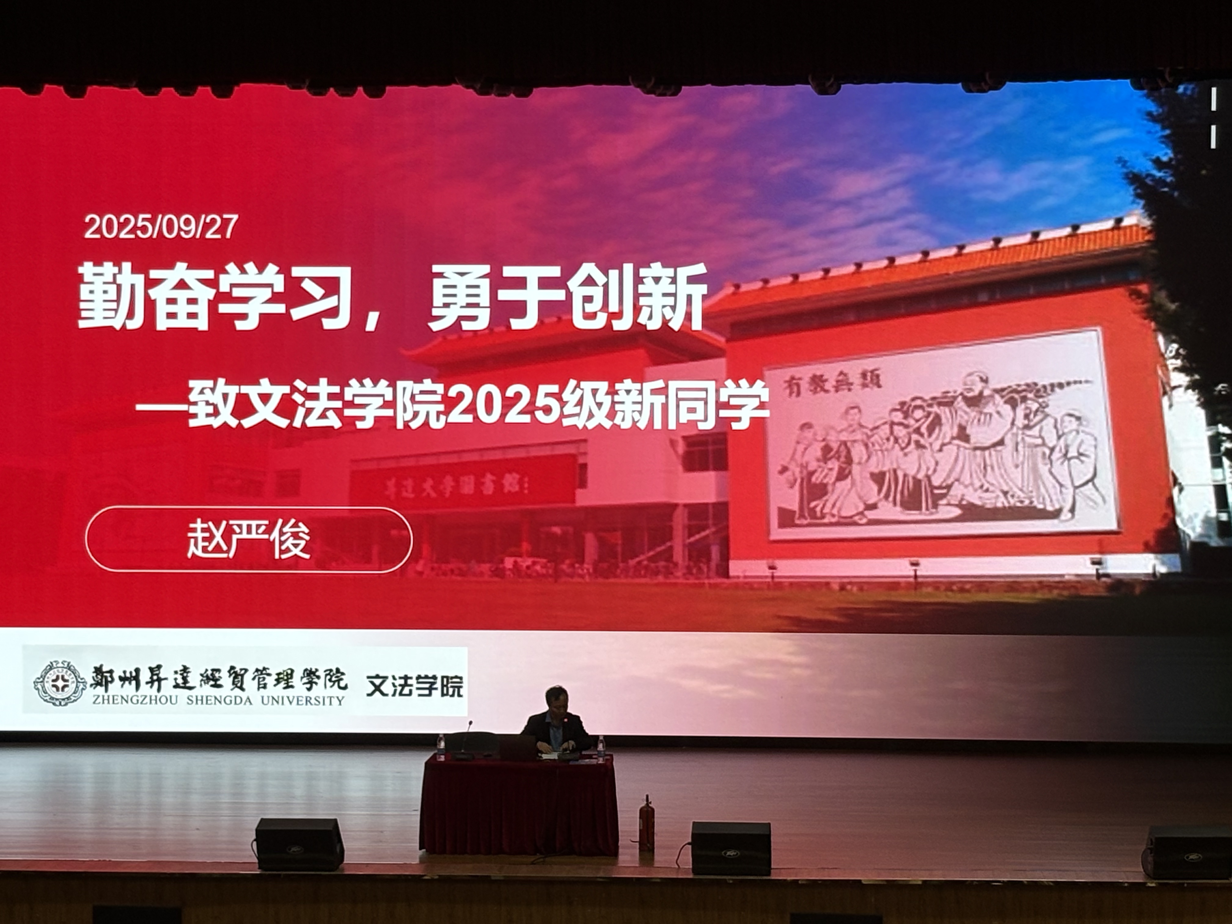 赵严俊副院长以“勤奋学习,勇于创新”为主题,为新生解析大学学习转变与挑战,指导课堂学习与课外实践,寄语新生自主成长,成为有思想、有担当、有作为的文法新人。