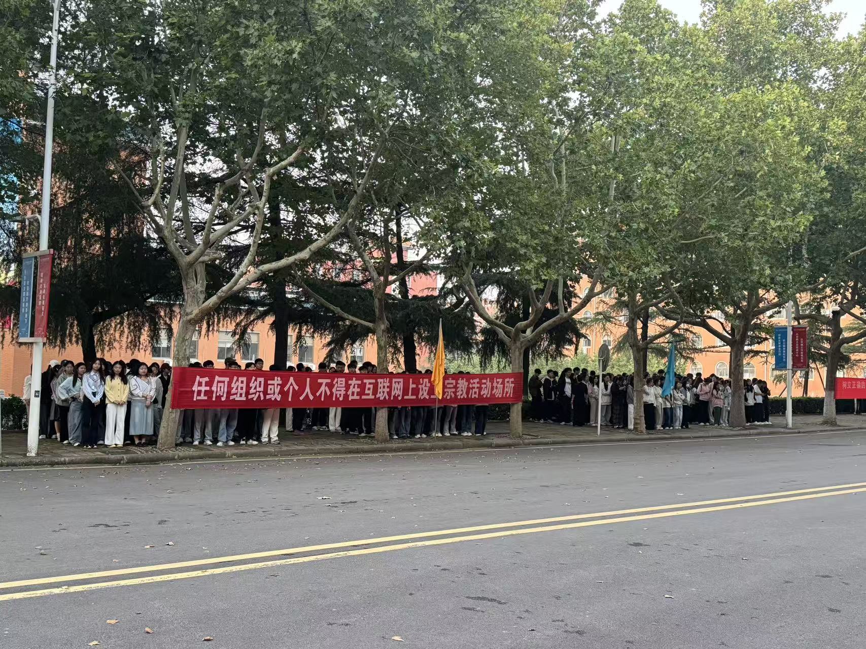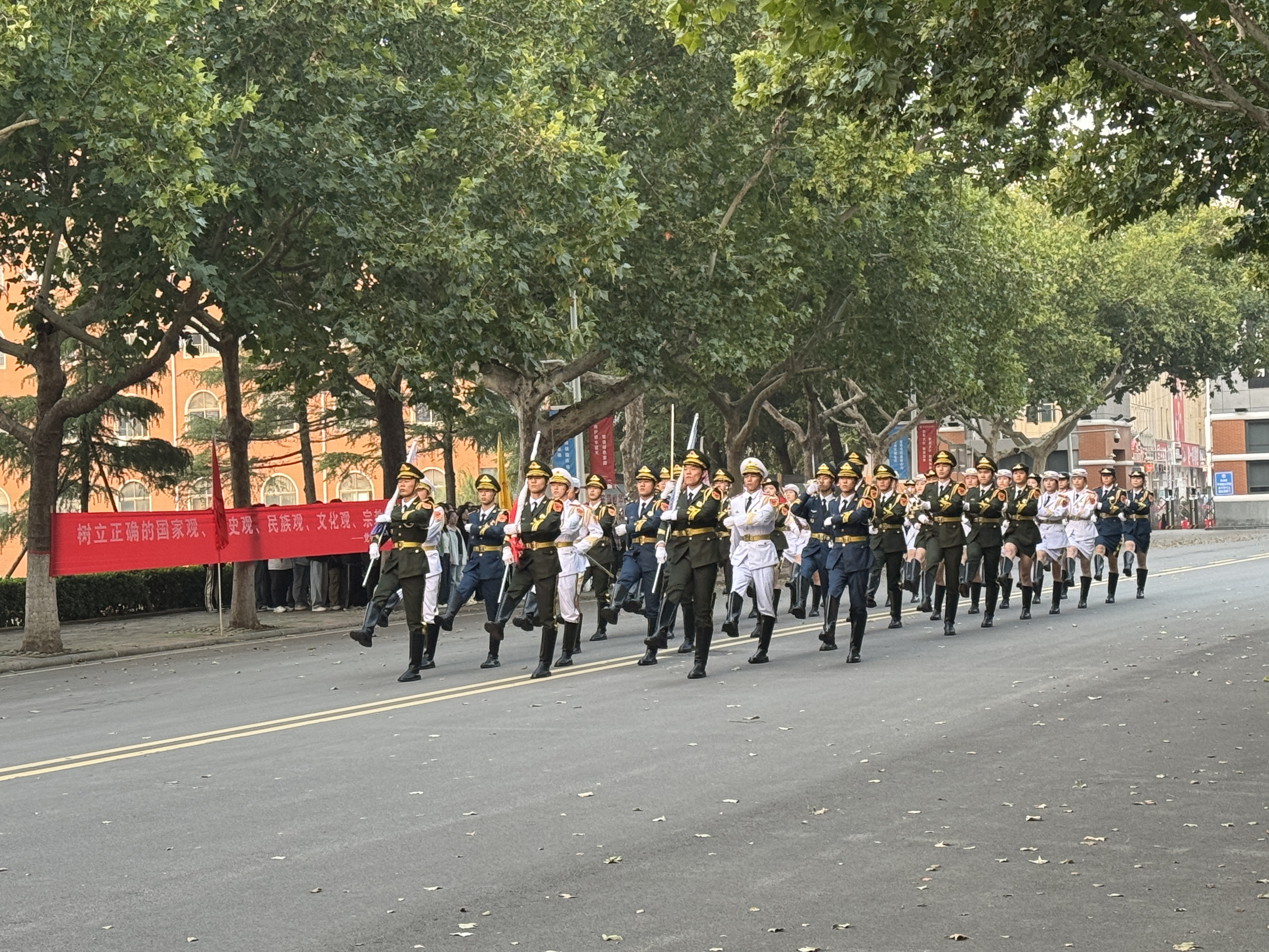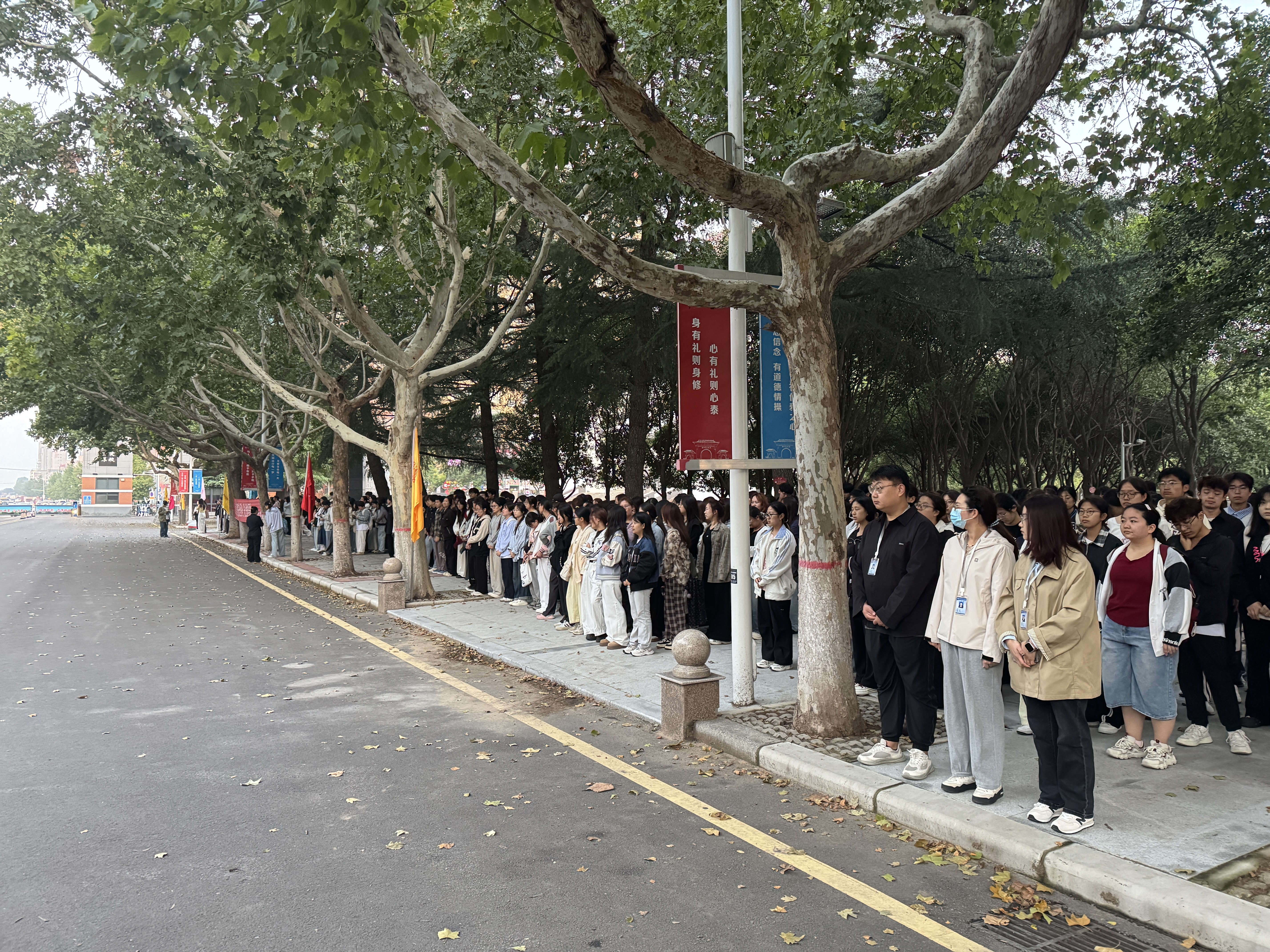 伴随着雄壮激昂的《义勇军进行曲》,鲜艳的五星红旗在晨光中冉冉升起,全体师生肃立注目,向国旗行注目礼,爱国之情在每个人心中激荡。仪式过程中,全体参与人员严格遵守观礼要求,无人穿拖鞋、睡衣,无人戴帽、插耳机或交头接耳,始终保持庄重肃穆,以实际行动表达对国旗的崇敬与对祖国的热爱。为保障仪式期间现场秩序,学院在老兵、龙湖、文萃苑等四个方块区域安排人员站岗值守。师生们在前往升国旗地点途中积极配合工作人员工作,自觉减少使用手机,共同营造了严肃有序的现场氛围。