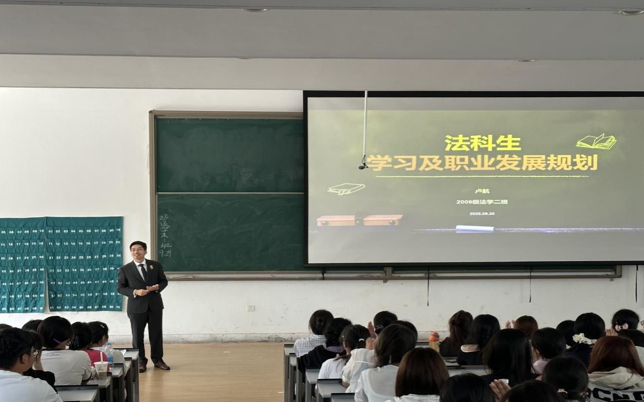 9月30日上午,我院在教学1号楼118教室举办“法科生的学习与职业发展规划”专题讲座。本次活动邀请了我校优秀校友2009级毕业生卢航律师,与2025级法科生们进行了一场坦诚而深入的交流。