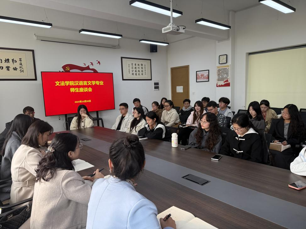 为贯彻“以学生为中心”的教育理念,拓宽师生沟通渠道,深入了解学生诉求,10月30日下午,文法学院召开汉语言文学教研室师生座谈会。会议由汉语言文学教研室主任杨春艳主持,汪梁、郝丽洁、韩笑君和金子老师作为教师代表参会,2023级至2025级学生代表等参加了本次座谈会。