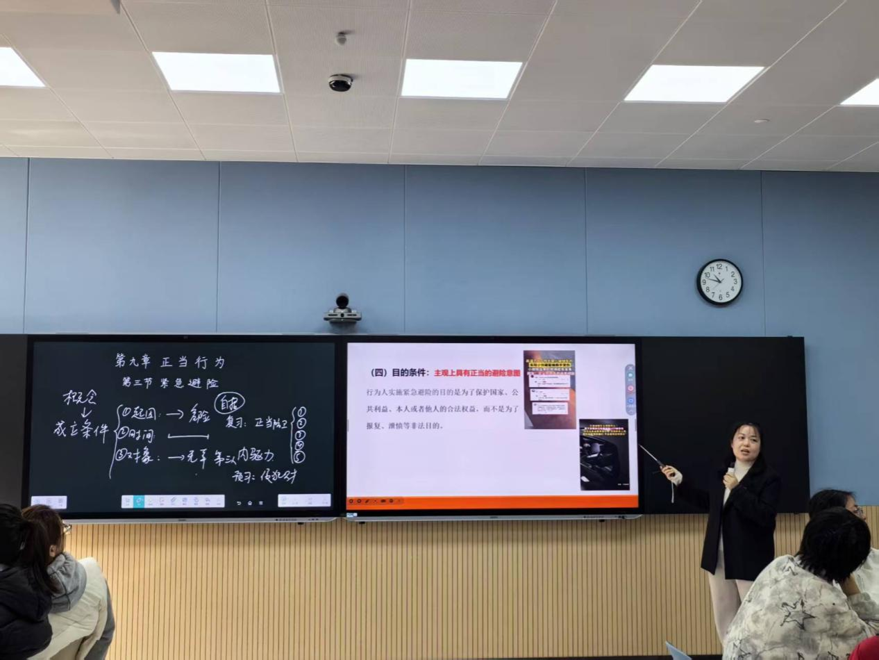 为更好落实立德树人根本任务,探索思政教育与专业课程协同育人的有效路径,11月11日上午,文法学院法学教研室组织教师,集体观摩了郭青梅教授主讲的《中华人民共和国刑法学I》课程,并就“紧急避险”专题教学进行了深度研讨。