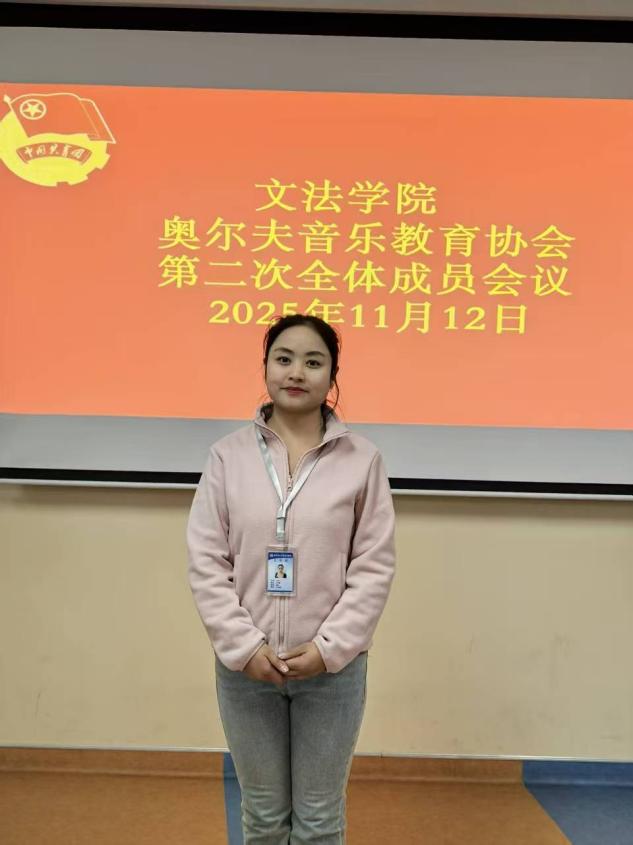 会议伊始,社长金帝作动员讲话。她回顾了协会自成立以来在音乐教育实践与推广方面取得的成果,并且希望全体成员能以此次会议为契机,积极参与后续活动,共同探索音乐教育的更多可能性。他还对社团未来的活动规划进行了简要介绍,鼓励成员们发挥特长,为社团注入新的活力。接着,指导教师马方慧围绕奥尔夫音乐教育的核心理念与实践方法进行了分享。她结合自身教学经验,阐述了奥尔夫教育法“以人为本”“寓教于乐”的特点,希望通过协会的努力,让更多人在音乐中找到自我表达的方式,感受艺术的魅力。马老师还针对后续活动提出了具体建议,包括分阶段开展教学实践、加强成员间的互动协作等,为社团的发展指明了方向。会议结束后,与会成员纷纷表示,通过指导教师和社长的讲话,对奥尔夫音乐教育的内涵和社团的发展目标有了更清晰的认识。