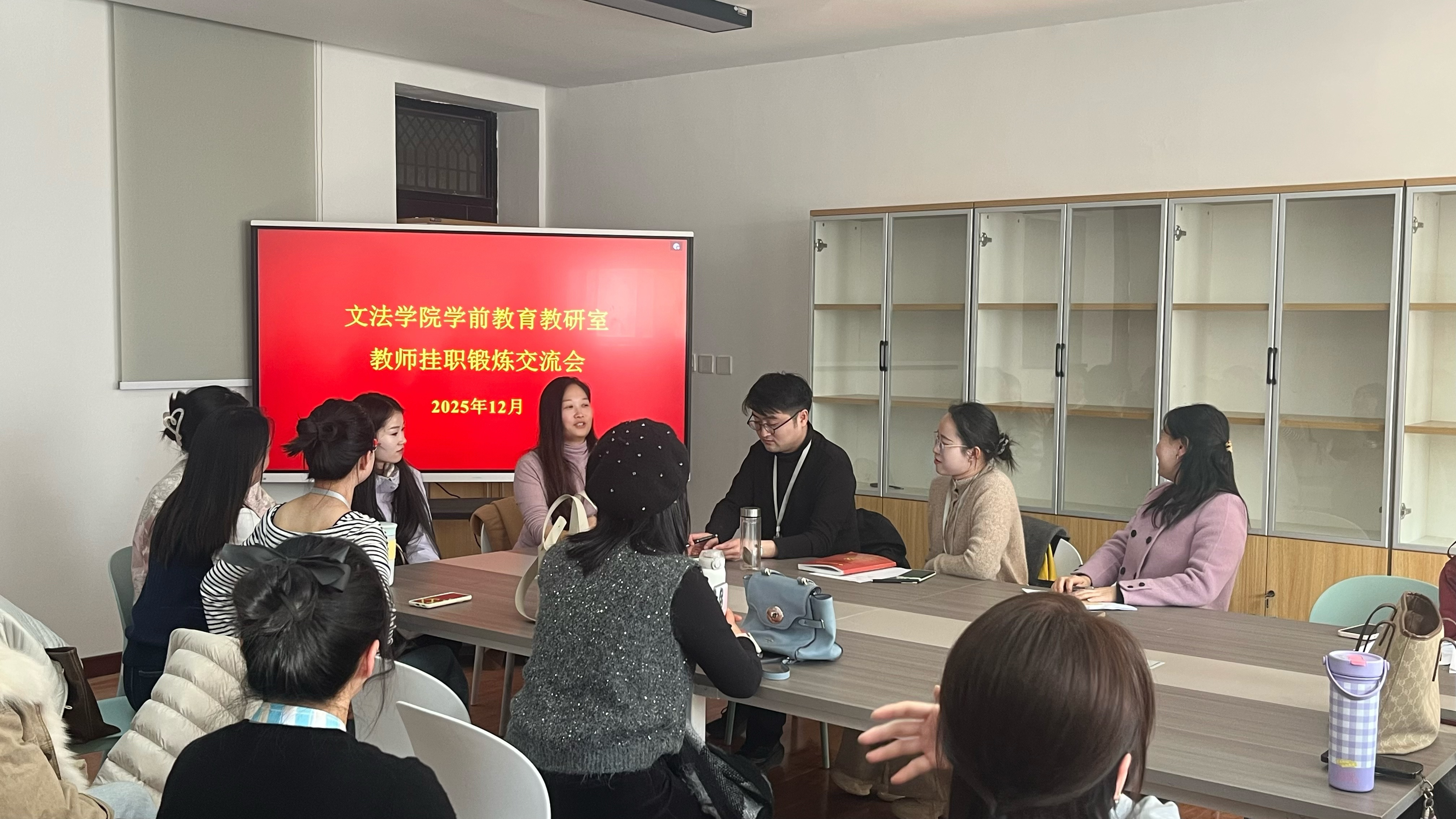 2025年12月4日,文法学院学前教育教研室在商管楼318举行挂职锻炼经验交流会议,全体教师参加。此次挂职是我院深化产教融合、推动“双师型”教师队伍建设的重要举措,旨在通过一线实践提升教师专业能力,增强学院服务区域教育发展的实效。冯艳艳老师就挂职期间的收获与参会老师分享。