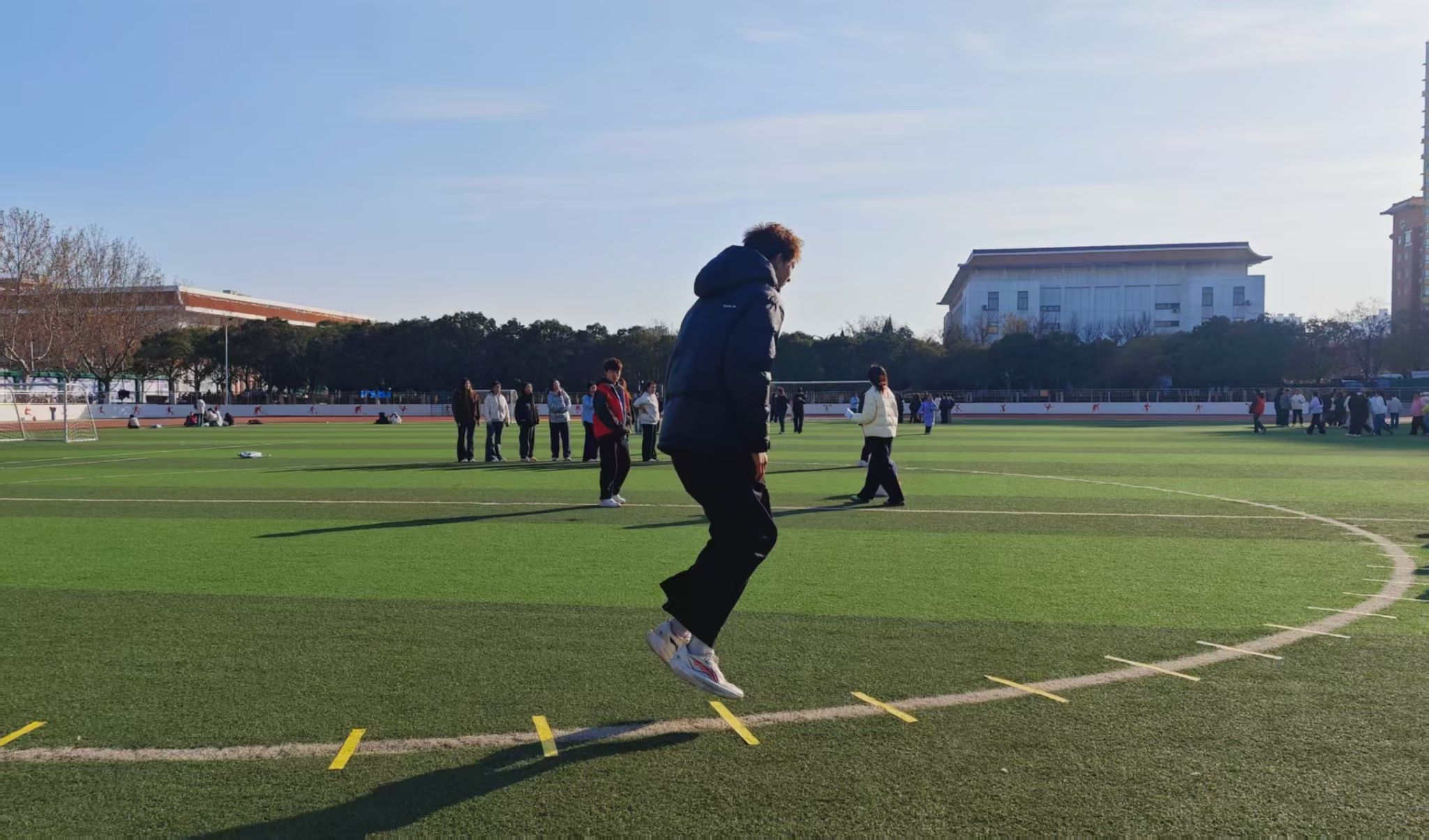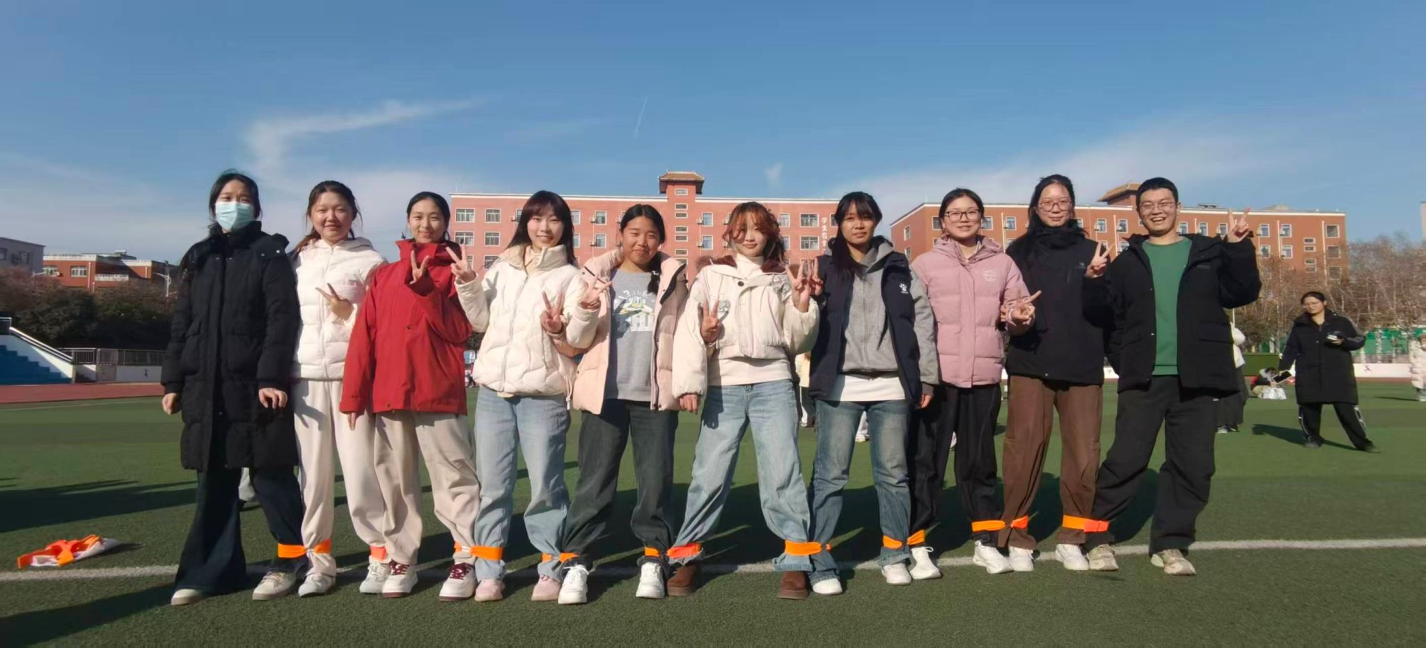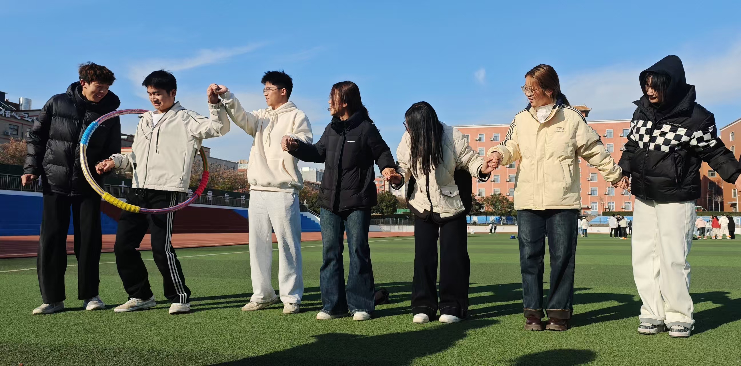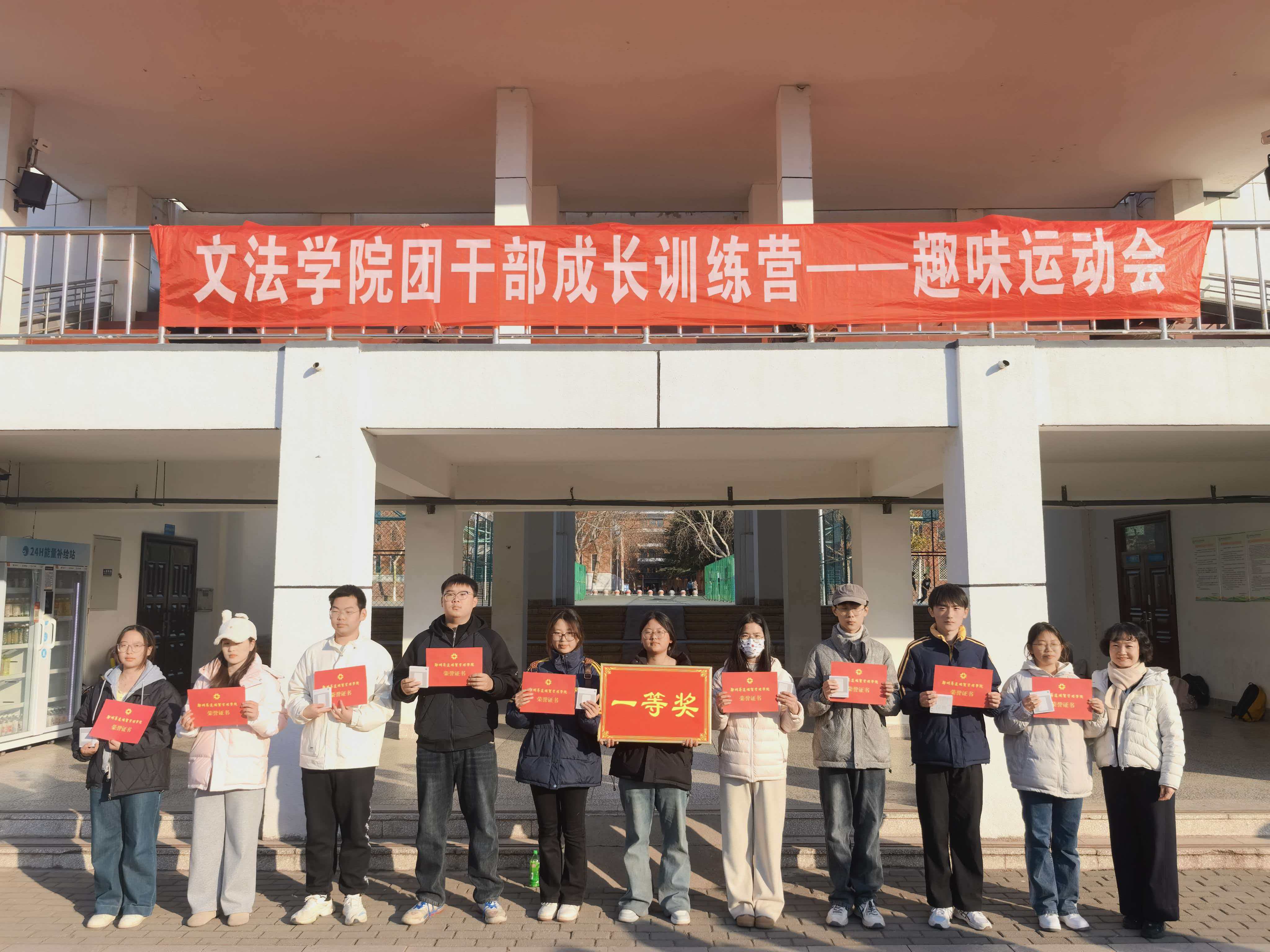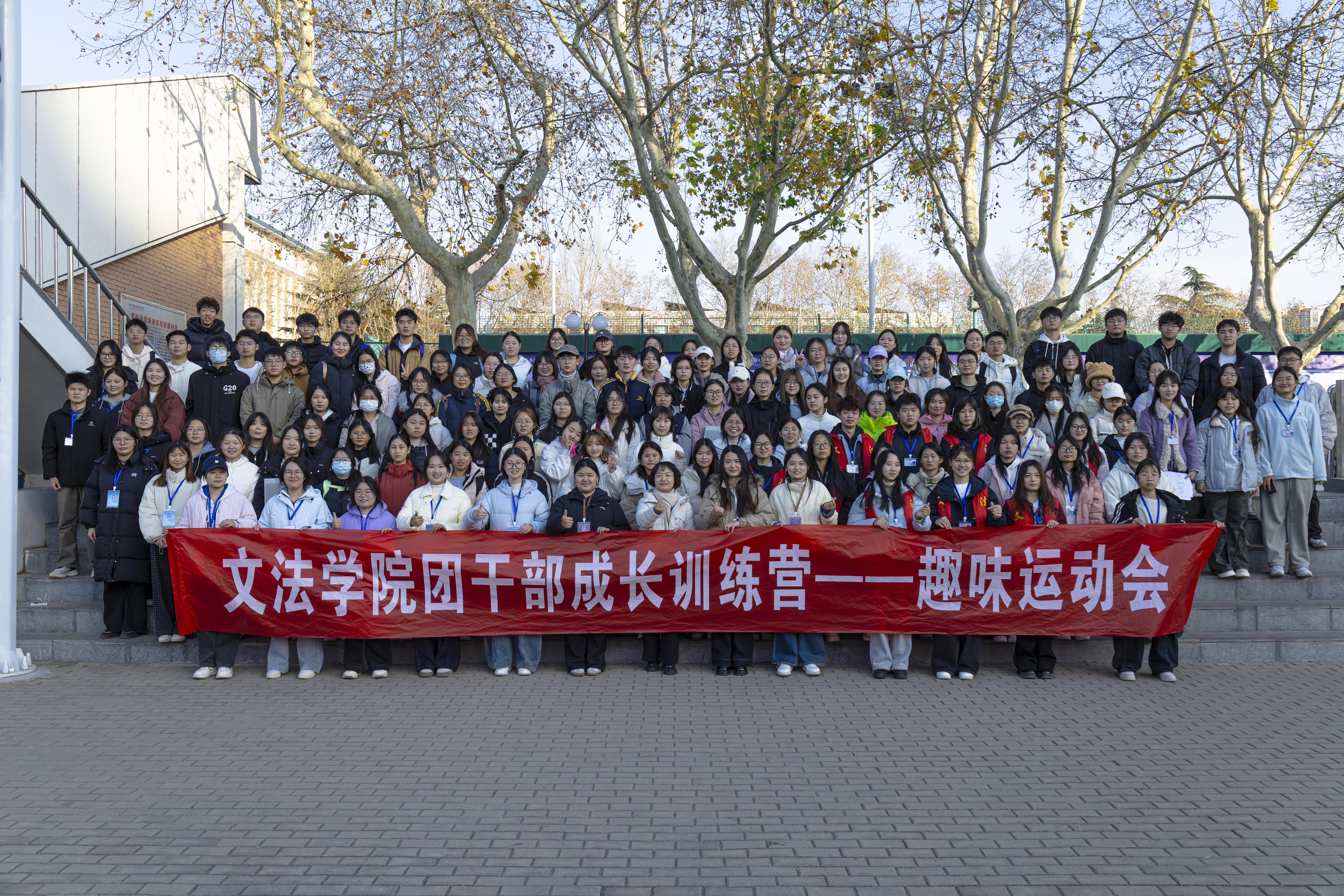 为弘扬并传承一二·九运动中青年学子的爱国热忱与团结奋进精神,进一步增强团干部队伍的凝聚力,文法学院团委于12月4日下午2时在学校运动场举行纪念一二·九运动暨团干部成长训练营之趣味运动会。本次活动由文法学院团委学生会主办,团委组织部与网络宣传部联合承办。文法学院党委副书记郑玲玲、学院团委副书记于晔以及学院团委学生会主席团和全院团支部书记参加本次活动。