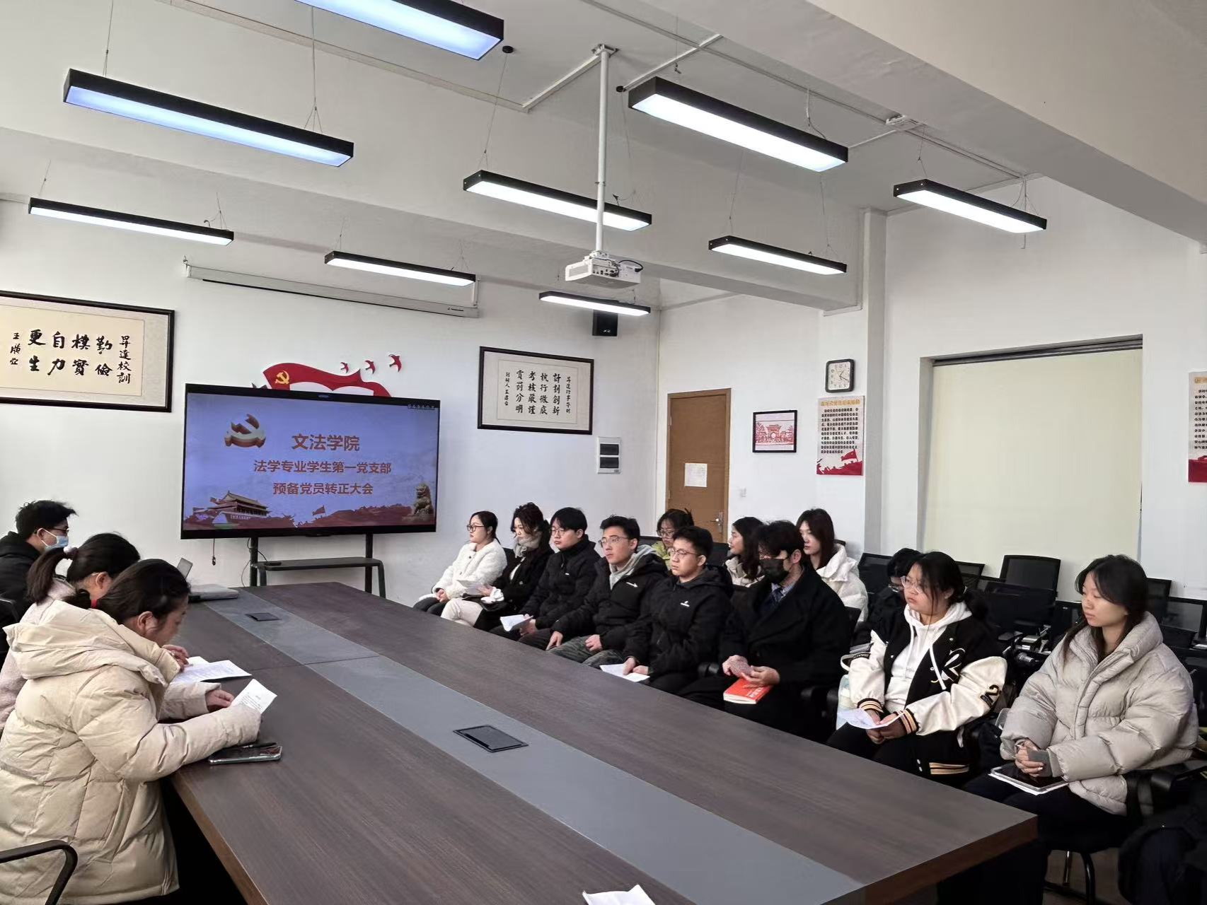 12月5号,文法学院法学专业学生第一党支部在教学1号楼314召开预备党员转正大会,党支部全体党员参加,会议由组织委员张欣煜主持。