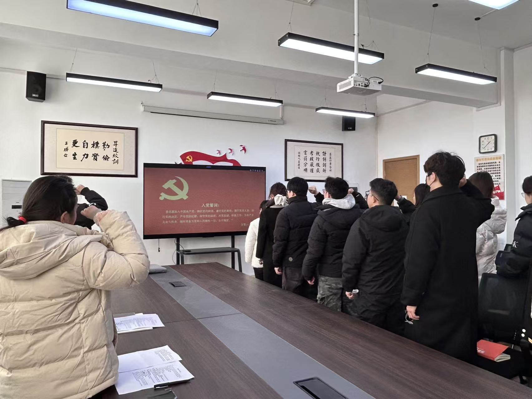 党支部书记王松洁向转正党员表示祝贺并提出要求。她强调,党员身份意味着重大责任,希望大家以转正为新起点,以更高标准严格自律,持续加强党性修养,凝聚奋进力量,在学习工作中发挥先锋模范作用。