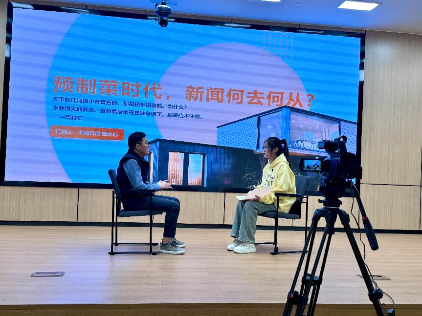 讲座结束后,贾永标接受2025级新闻学专业学生代表沈雨欣同学的面对面访问,并围绕“成长契机”“实践积累”等问题给予解答。
