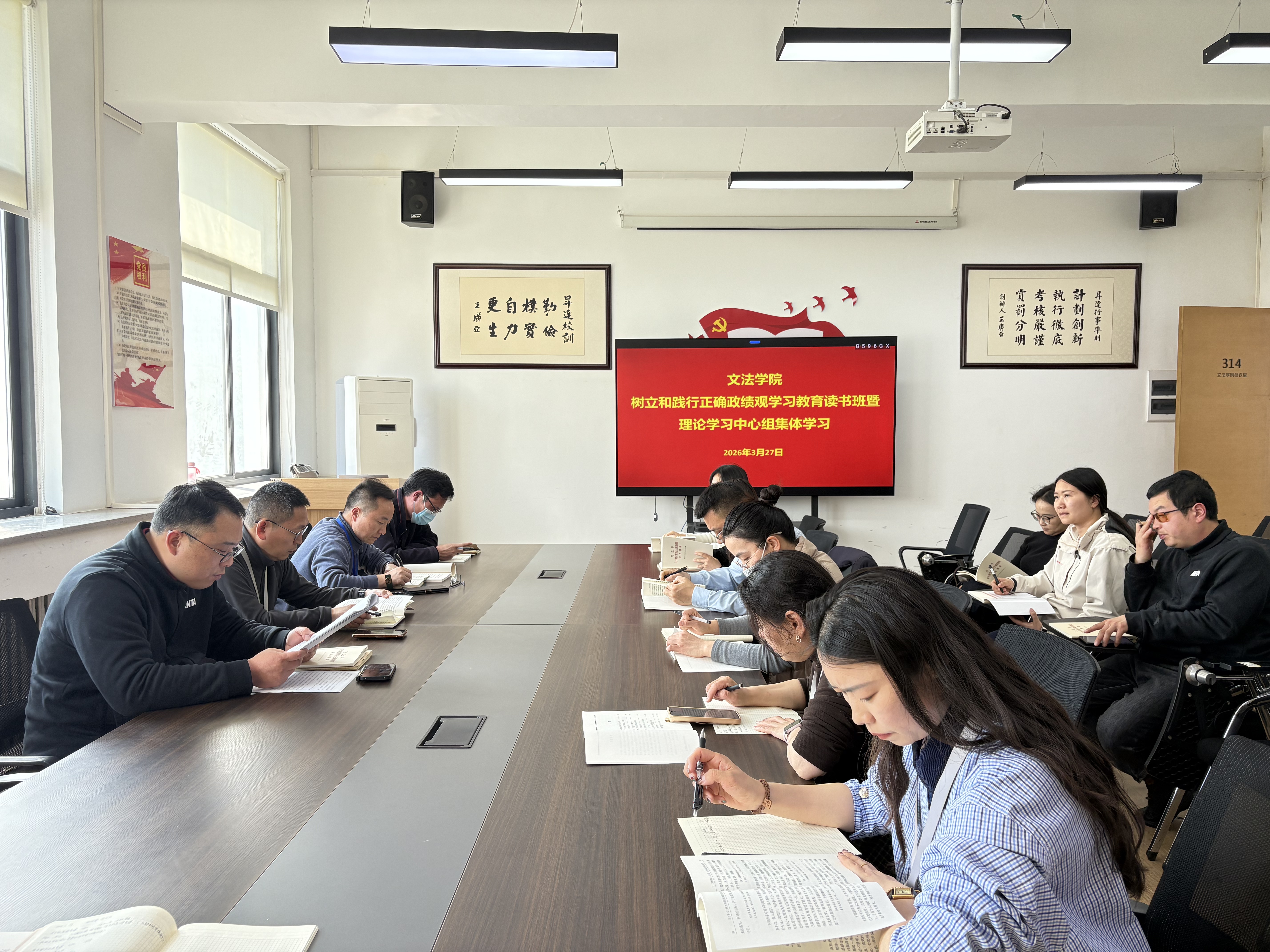 3月27日,文法学院党委在教学1号楼314会议室举办树立和践行正确政绩观学习教育读书班暨理论学习中心组集体学习会议,学院党委委员、党支部书记和组织员参加会议,会议由学院党委书记刘晓川主持。