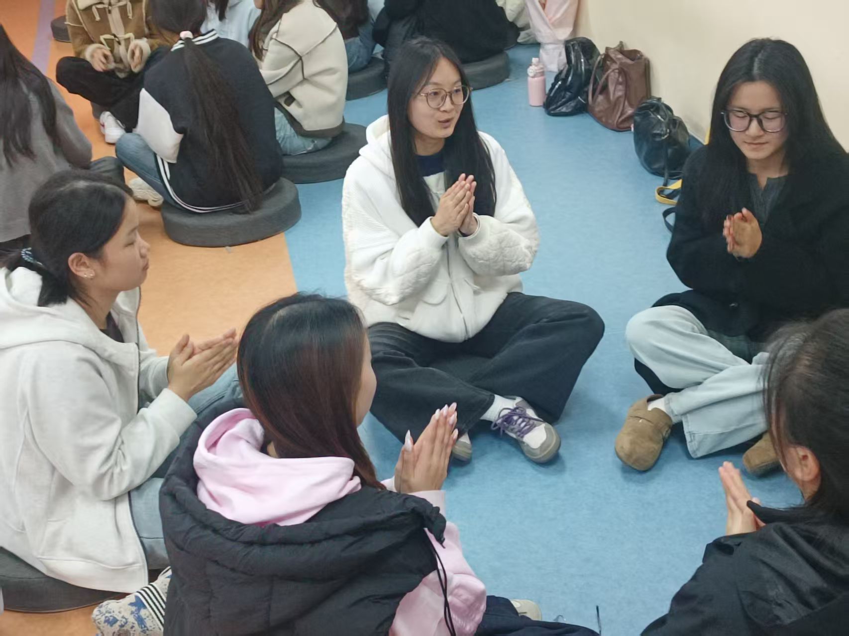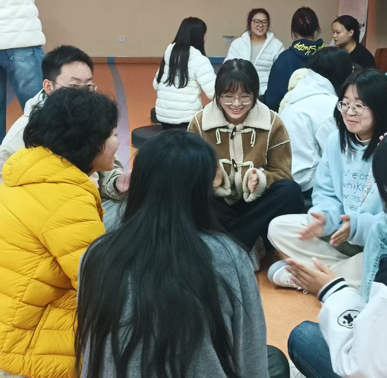 本次活动环节设置精心,兼顾趣味性与知识性。活动伊始,节奏模仿环节率先拉开序幕,同学们跟随引导积极模仿,快速融入活动氛围。随后进入自然声音教学环节,金帝通过现场示范,详细讲解并带领同学们掌握多种身体发声技巧。同步开展的声音指令互动游戏氛围热烈,同学们反应敏捷、踊跃参与,在互动中加深对声音节奏的理解。紧接着,四季声音小剧场环节如期开展,同学们分工协作、默契配合,用声音共同演绎出春之生机、夏之热烈、秋之静谧、冬之轻柔的唯美意境,充分展现了创造力与表现力。活动尾声,自然声音交响曲合奏将现场氛围推向高潮,全体同学分组协作,发声层层叠加、收束井然有序,用身体奏响专属自然乐章,在轻松愉悦的氛围中,真切感受节奏之美与集体创作的乐趣。