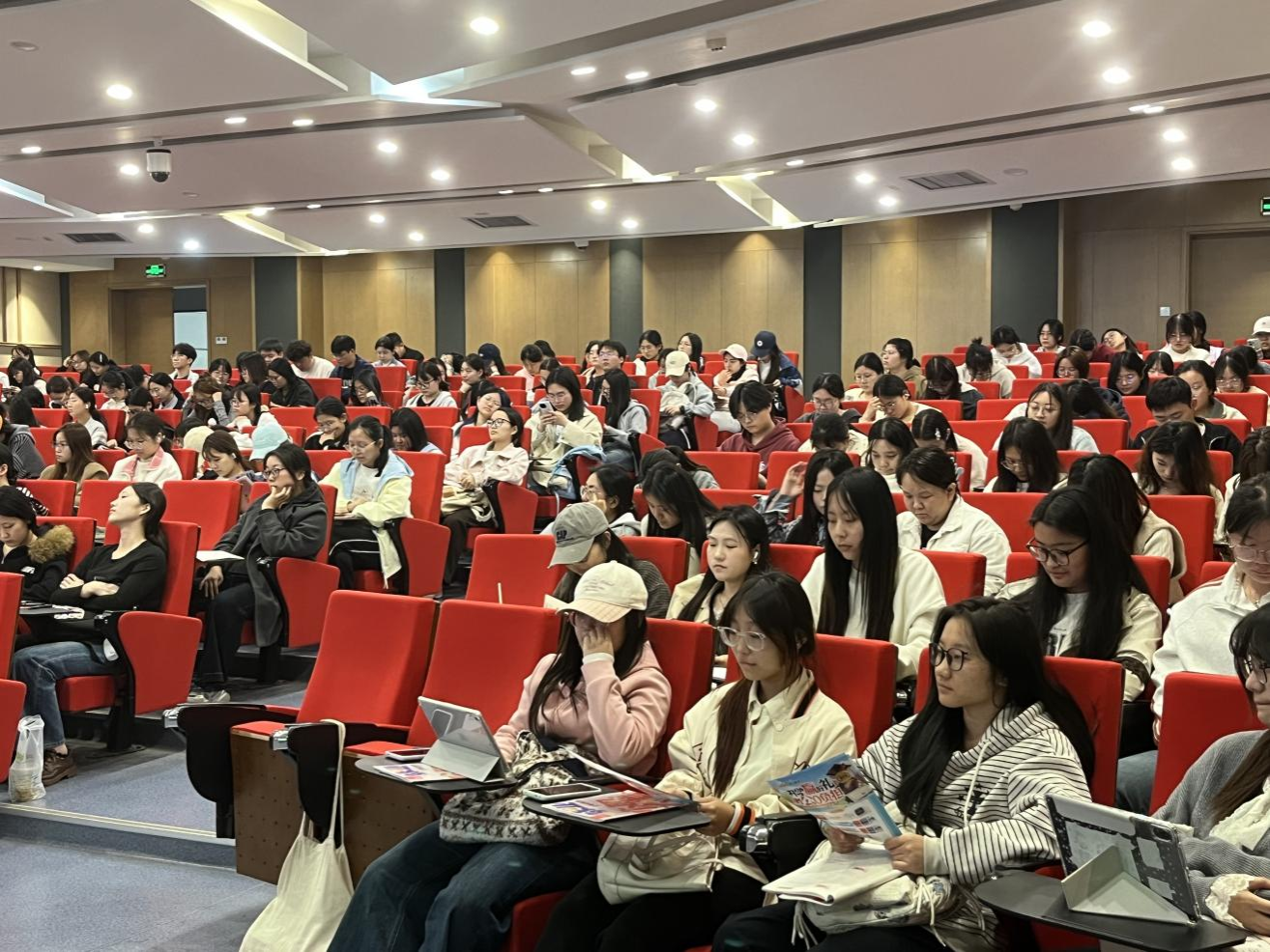 讲座中,乔慧如院长结合十余年公考与事业单位考试研究经验,围绕“自我认知、职业认知、职业准备”三个方面展开系统讲解。她引导学生从性格特质、专业优势出发找准自身定位,清晰梳理个人发展方向。针对汉语言文学专业特点,乔老师详细解读国考、省考、选调生、事业单位、三支一扶、军队文职等主流就业路径,逐一介绍报考条件、时间节点、考试科目与招录优势,重点分析专业适配岗位与竞争形势,为学生提供清晰的报考参考。在职业准备环节,乔老师强调知识储备、技能提升与实践行动的重要性,针对性讲解行测、申论、公基等备考要点,分享判断推理、言语理解等高效学习方法,并围绕证书考取、实习实践、校园经历积累等内容给出可落地的成长建议。现场互动积极,氛围热烈。