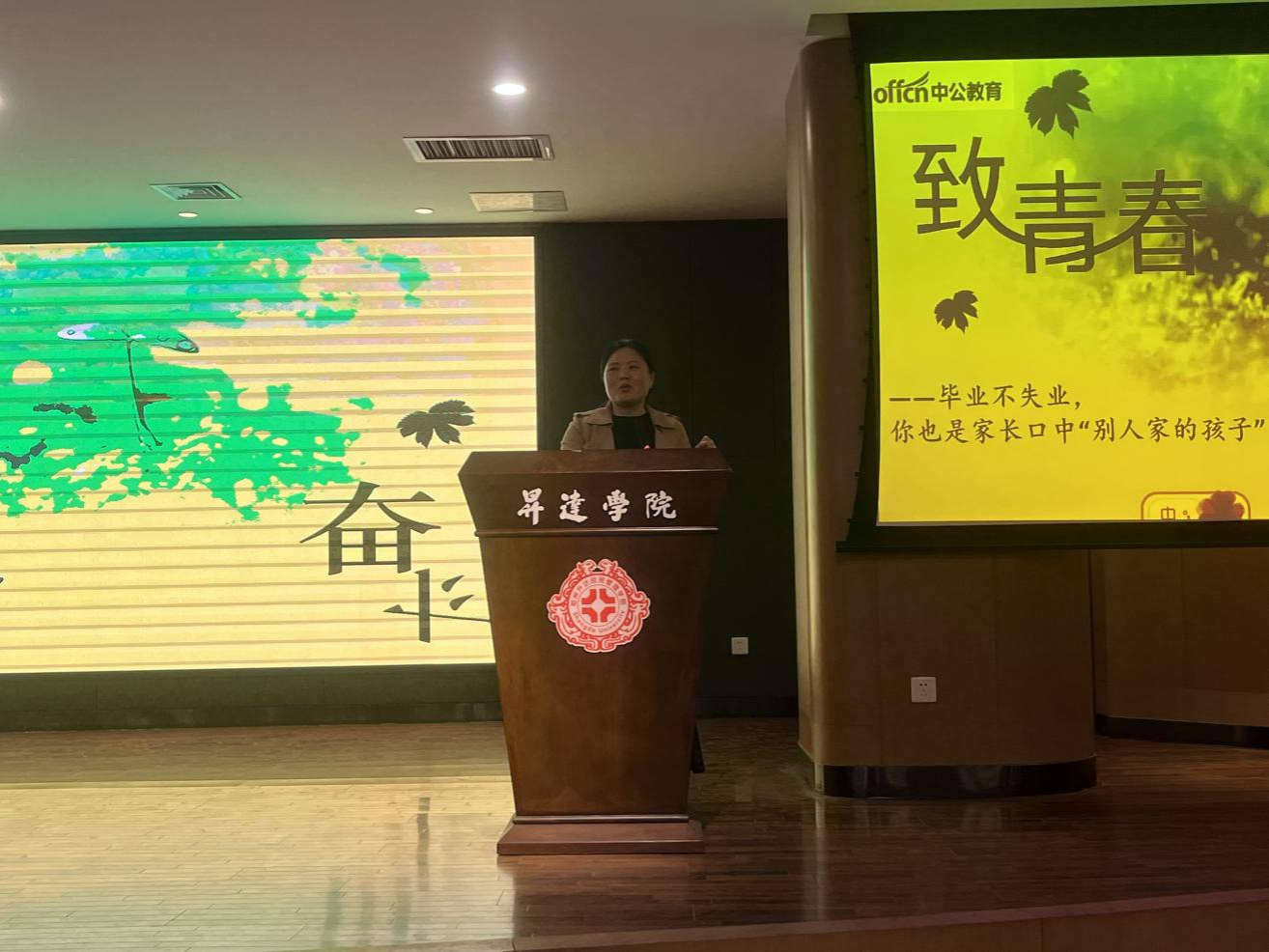 为进一步提升汉语言文学专业学生的职业规划能力,明确体制内备考与就业方向,帮助汉语言文学专业大二、大三学生提前规划毕业出路,2026年4月2日下午,文法学院邀请河南中公教育行测文科院院长乔慧如主讲,在综合实训楼双创大讲堂成功举办《毕业不失业,你也是别人家长口中的“孩子”》就业指导讲座。讲座由汉语言文学教研室主任杨春艳主持,汉语言文学专业大二、大三近200名学生到场聆听。