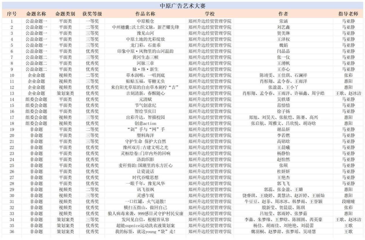 文法学院“广”纳英才,赛场“告”捷凯旋 一举斩获第七届中原广告艺术大赛36项大奖