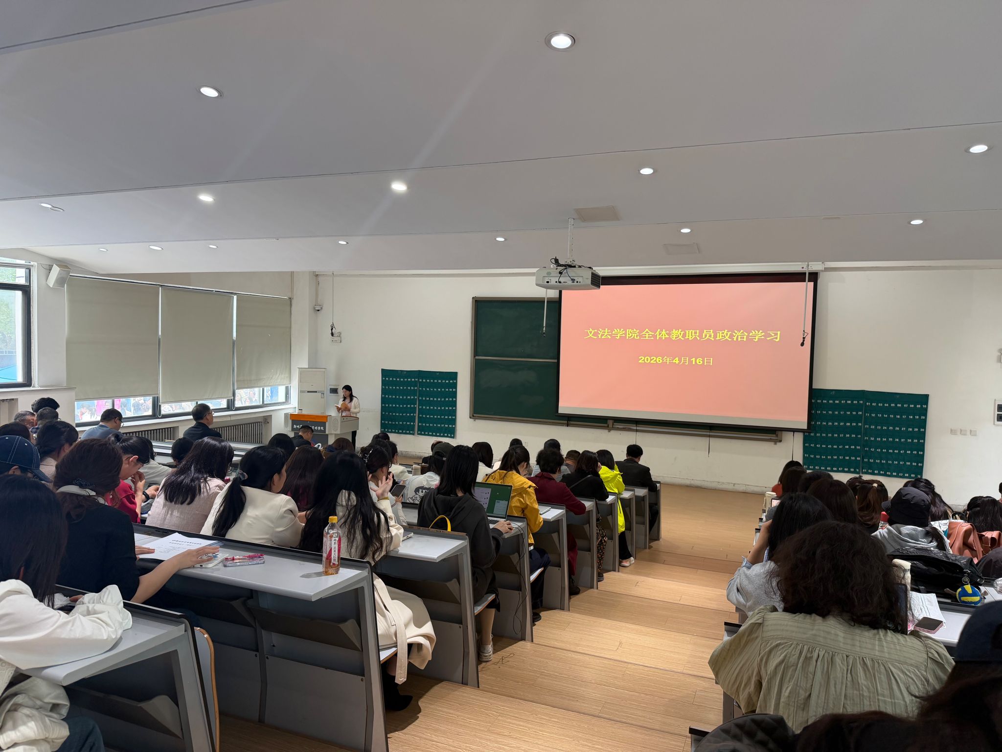 为进一步强化教职工理论武装与思想引领,切实筑牢校园安全思想防线,4月16日下午,文法学院在教学1号楼118教室组织全体教职工开展专题政治学习。