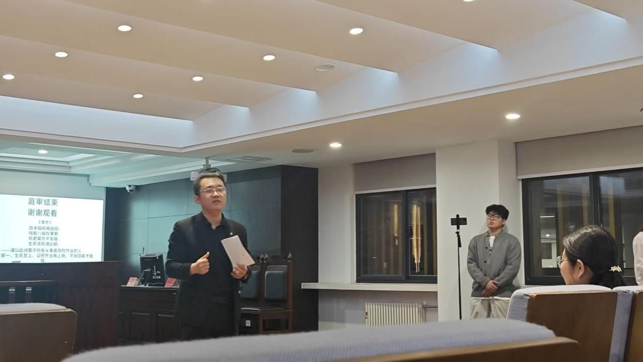 为深化法学专业实践教学,强化学生知识转化与实务应用能力,4月10日,文法学院模拟法庭模拟审判活动在实训楼A-511教室顺利开展。模拟法庭指导老师李群锋、教研室主任刘凡义、民法教授徐静、经济法与生态环境法教师吴昌杨、北京浩天(郑州)律师事务所郑智友律师莅临现场指导,法学专业各年级学生到场观摩学习。