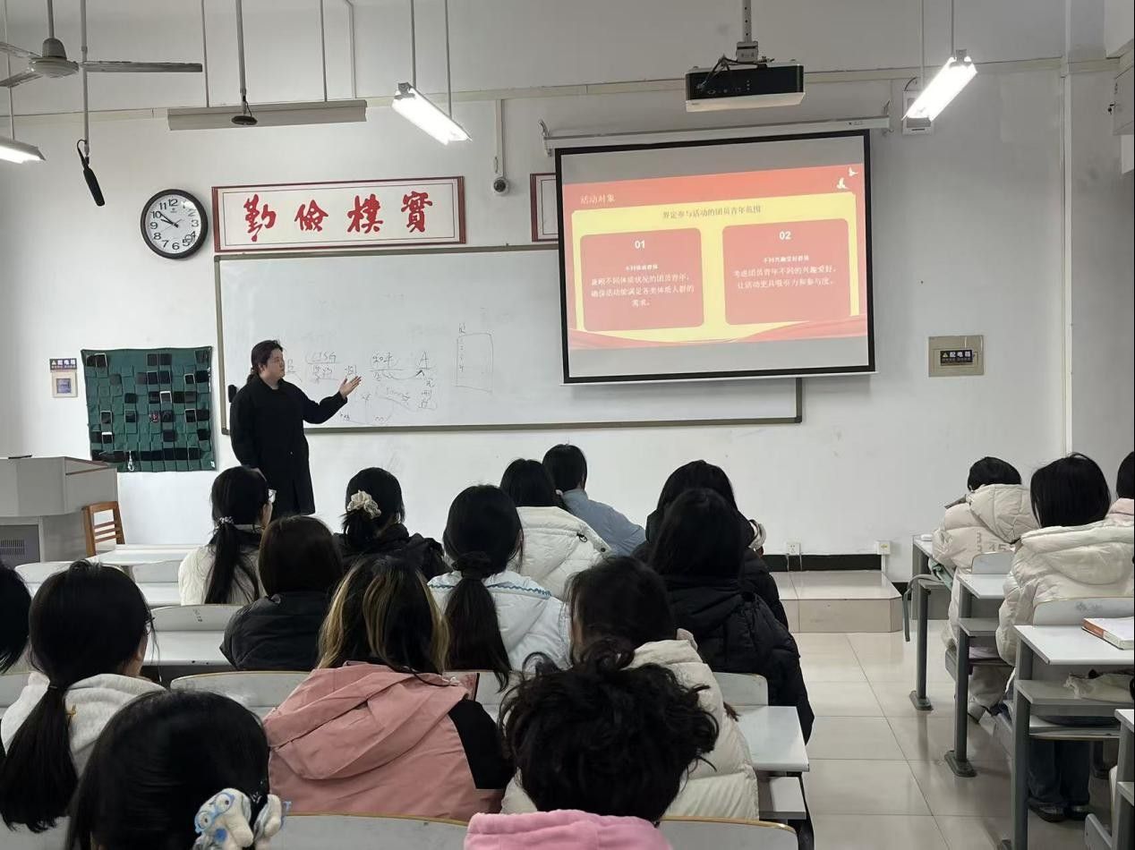 活动伊始,团支部书记围绕活动指导思想、教育方针与根本任务展开讲解,结合健康中国建设要求,重点阐释体质提升、心理调节、视力保护、体重管理四大核心内容,引导同学们树立科学健康观念,鼓励大家主动参与体育锻炼、快乐成长。随后,岳佳莉针对同学们在日常学习生活中存在的健康意识不足、锻炼习惯欠缺、身心发展不协调等问题,明确具体改进方向,引导大家将健康理念融入日常点滴,以强健体魄与阳光心态面对学习和生活。
