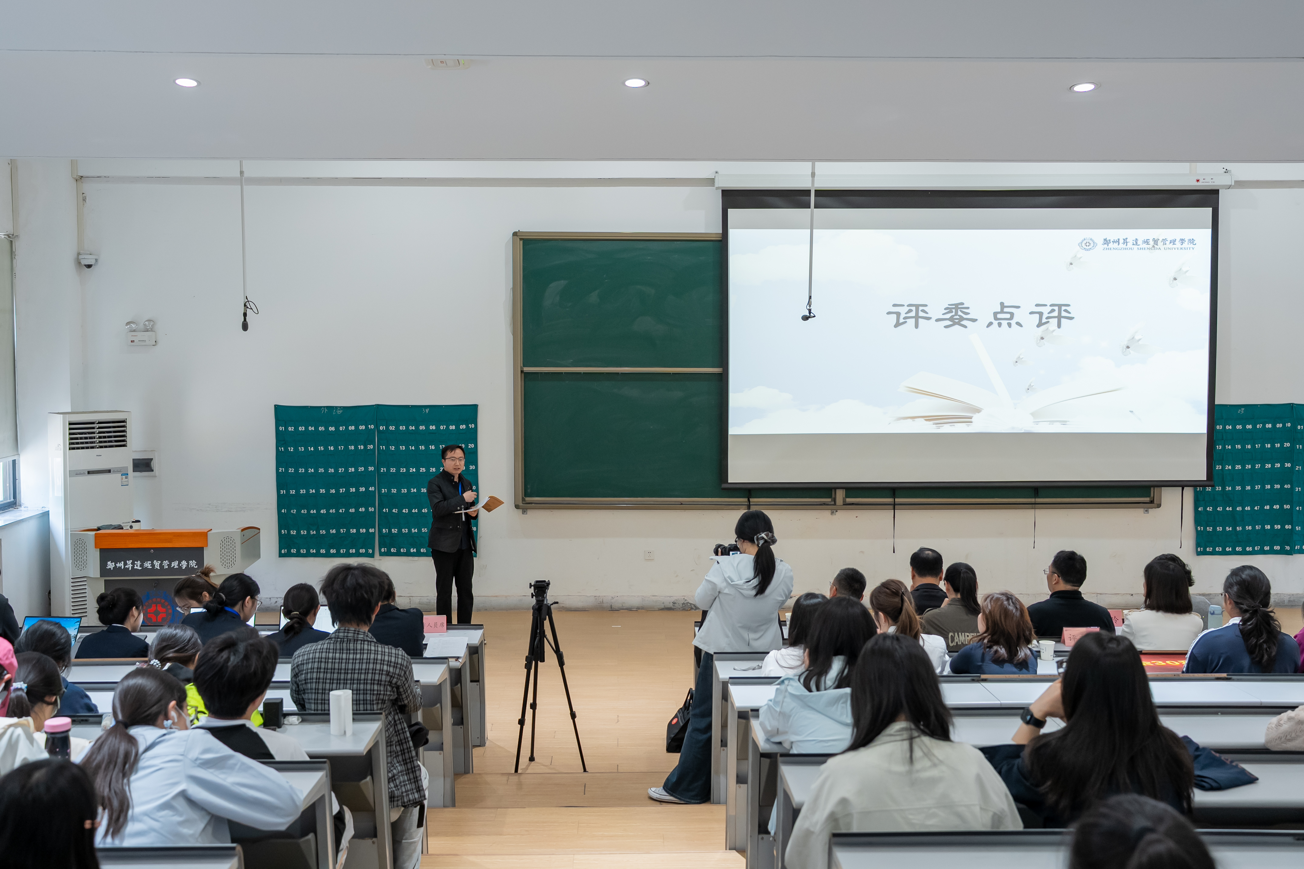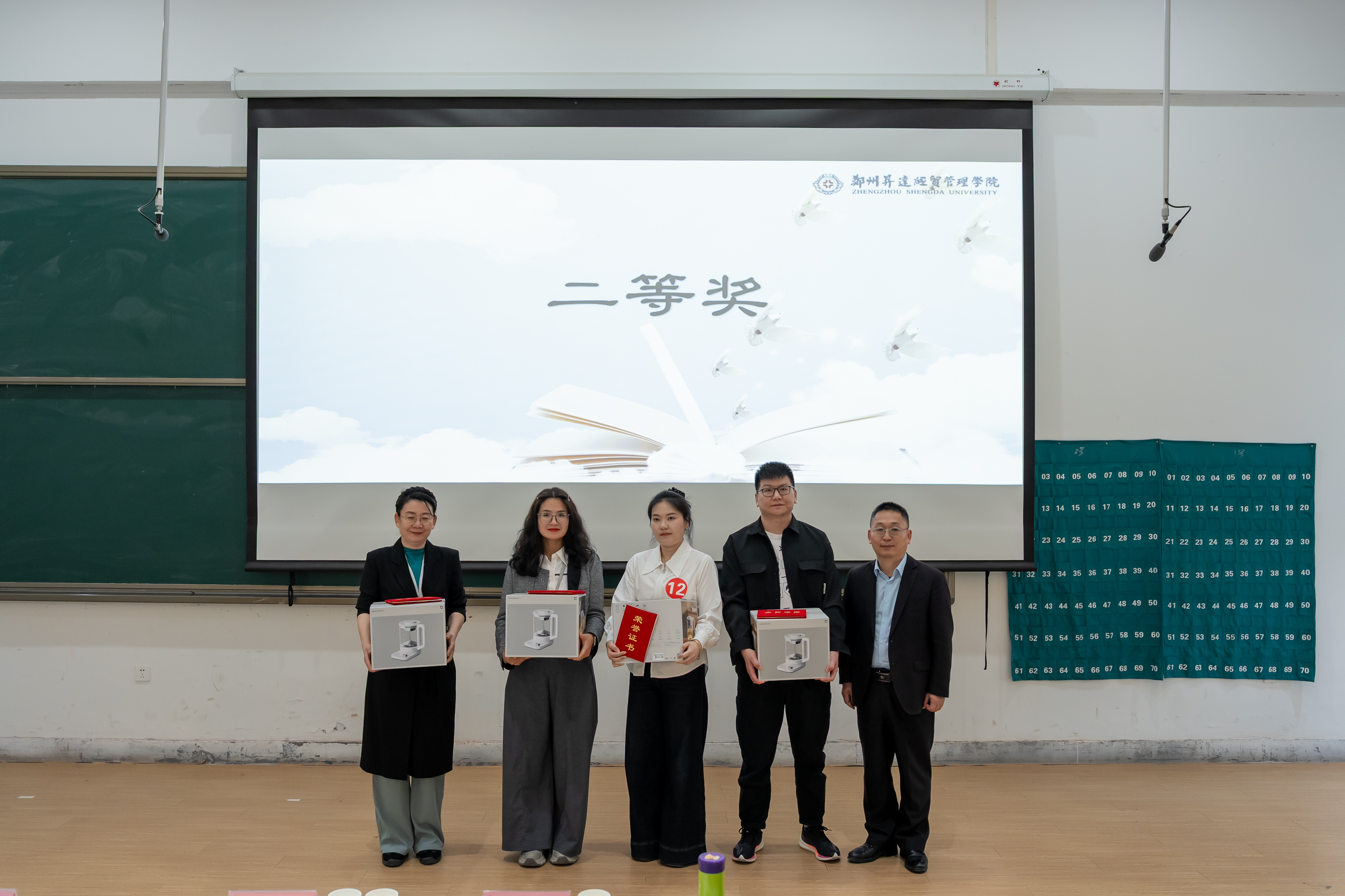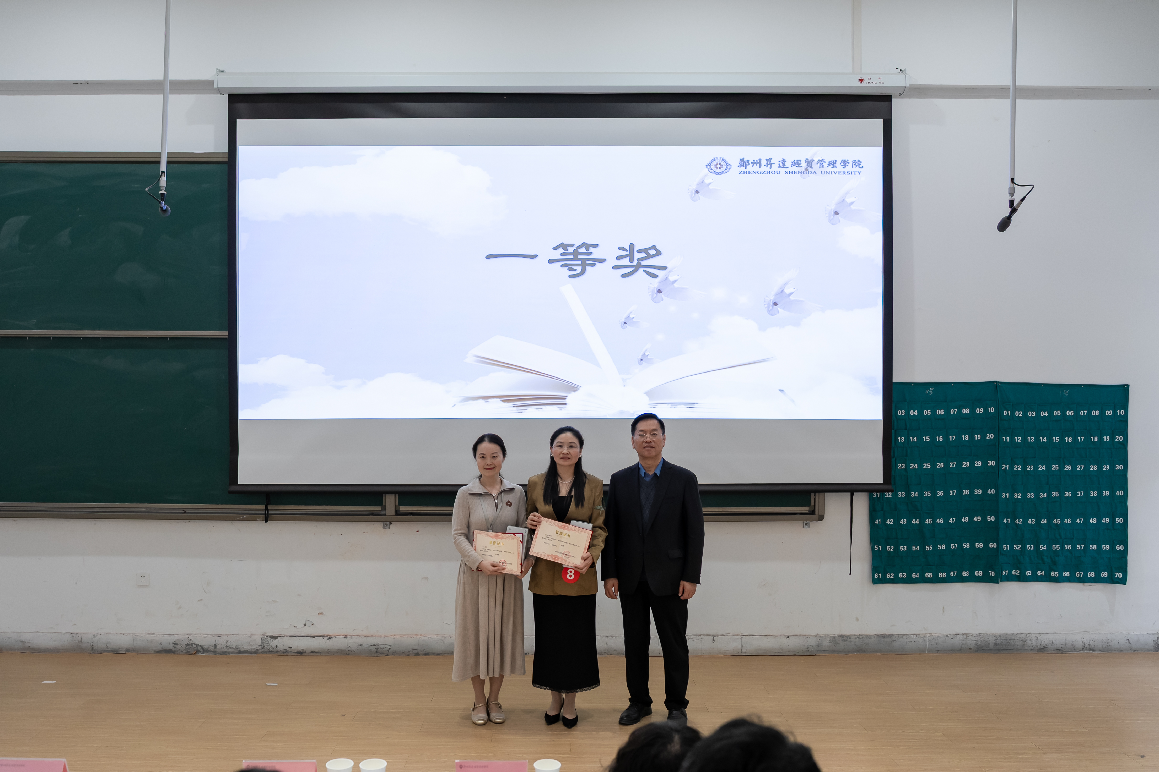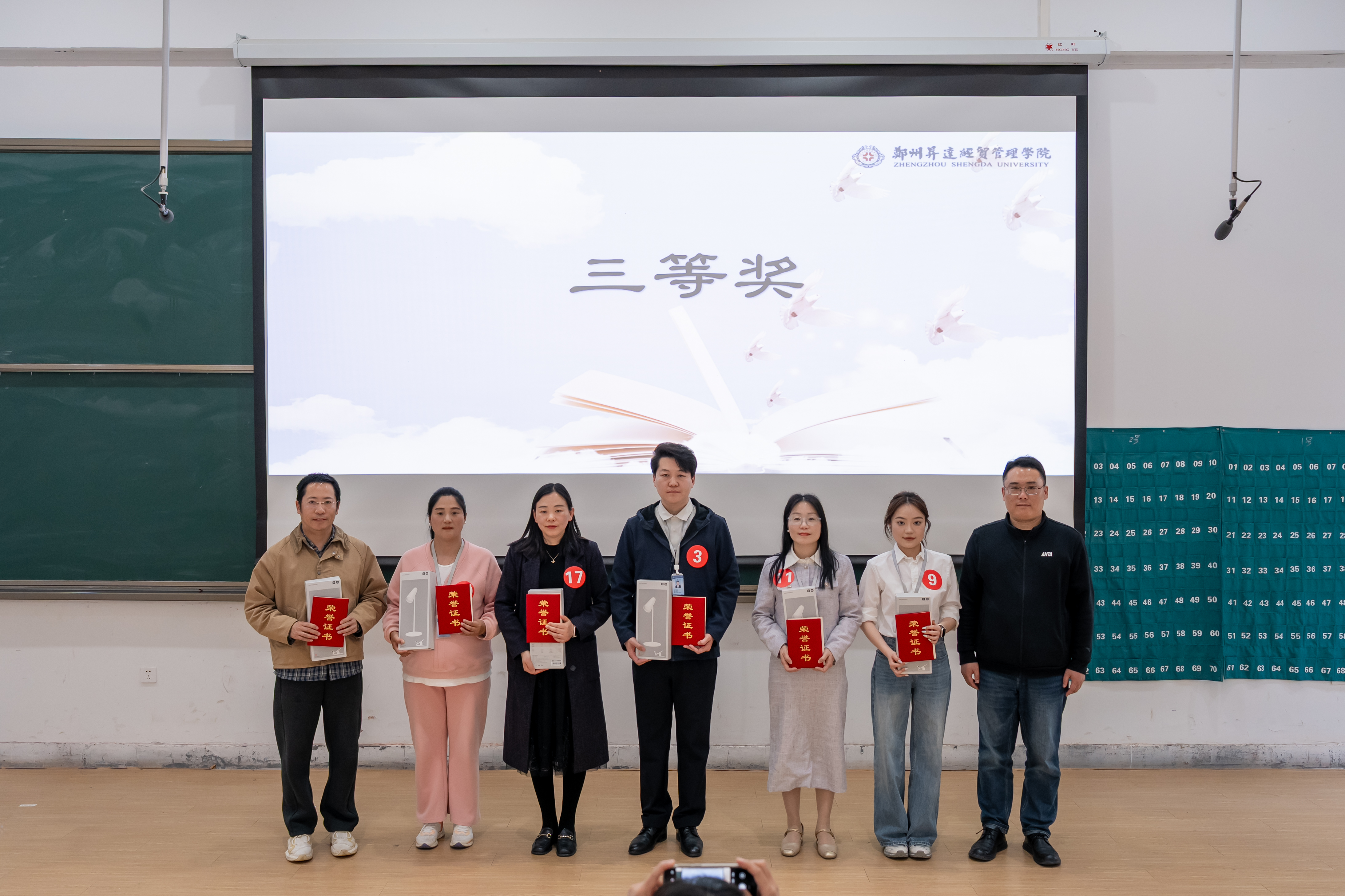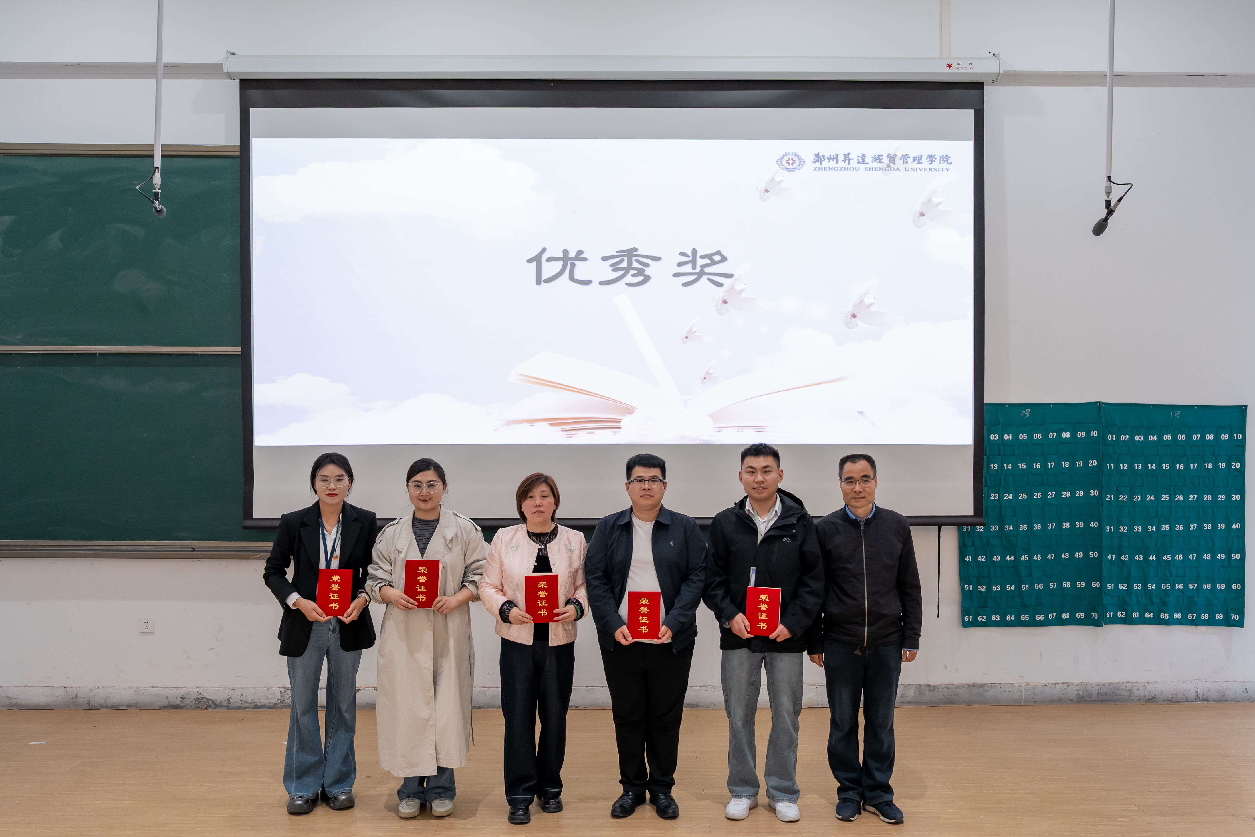 分享环节结束后,评委组秉持公平公正、严谨审慎的原则,从主题契合度、内容逻辑性、思想深刻度、语言表现力、现场感染力及舞台把控等多个维度进行综合考评打分。文法学院副院长赵严俊代表评委团作总结点评,他充分肯定了各位参赛选手立意鲜明、内容务实、紧贴教学、感悟深刻的突出优势,同时客观指出部分分享内容架构衔接不够紧凑、现场节奏与时长把控有待加强等问题,并针对性给出优化建议,为教职工后续阅读交流与成果展示指明提升方向。活动尾声,与会领导为获奖教师逐一颁发荣誉证书及奖品,全体人员合影留念,定格书香瞬间。