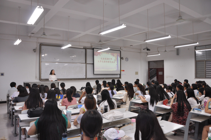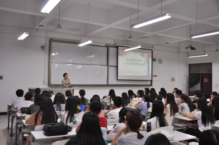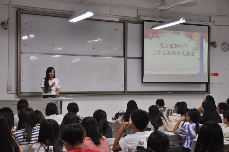 为了让同学们合理规划自己的大学生活,珍惜当下的大学时光,文法系于2017年6月1日晚7:00在道镕楼107教室举办欢送毕业生系列活动之大学生涯规划经验交流会。出席本次活动的嘉宾有文法系团委书记郑玲玲老师、文法系第十四届团委学生会团委副书记王玮辉,学生会主席张文,学生会副主席陈莹、董小双、李俊儒。系团委第十五届主席团、各部长、干事及各班班委到场参加本次交流会。