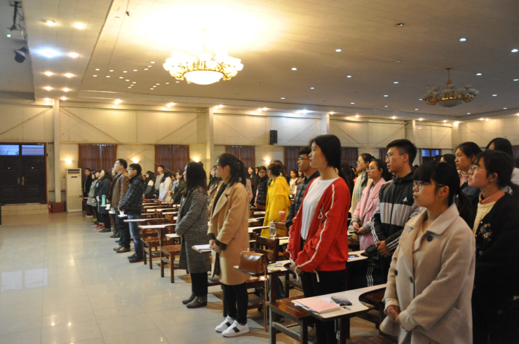 为丰富同学们的课余生活,提高大家学习党团知识的积极性。由文法系举办的党团知识竞赛于3月22日晚6:30在龙湖报告厅准时开始。本次活动特邀嘉宾有:系团委常务副书记彭凯老师、2015级团总支书记张明奇老师、院团委组织部刘月、第十四届团委学生会网宣部部长张日升、系四方馆读书会会长及学院上届党团知识竞赛冠军队代表刘晨阳,系团学干部及全系2016级学生共300余人参加了本次活动。