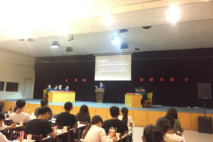 为了丰富新生的校园文化生活,激发大家对辩论的兴趣,文法系于9月19日在龙湖报告厅举办了“思辩青春,智慧论道”辩论表演赛。出席本次活动的嘉宾有文法系行政秘书兼团委书记郑玲玲老师,团委常务副书记彭凯老师,13级团总支书记郭青梅老师,15级团总支书记张明奇老师,院学生会主席樊锦乐,院学生会副主席耿鹏程,院辩论队的教练、队长和各兄弟系学艺部、辩论队的负责人。此外文法系主席团全体成员和各部部长、文法系16级全体新生都参加了本次活动。