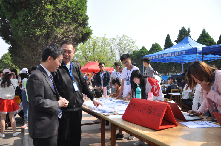 运动场上,运动健儿们正在进行激烈的比拼,幕后工作也在如火如荼的进行着。我系各位领导、老师相继来到大本营向同学们表示慰问。我院副院长兼文法系主任段丰乐老师、文法系党总支书记杨明志老师、团委书记兼行政秘书郑玲玲老师、团委常务副书记彭凯老师、14级团总支书记刘建辉老师、15团总支书记张明奇老师分别来到我系大本营,指导工作,慰问同学。