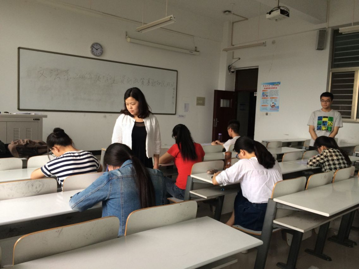考试开始前十分钟,申贷同学有序进场,文法系资助工作专员郭青梅老师宣读了考场纪律,并要求同学们自觉遵守。考试期间,监考人员认真监考,申请助学贷款的同学们认真答题,考生严格遵守考场纪律,整个考试期间纪律良好,未发现违反纪律的情况。四点以后同学们陆续交上答卷,考试圆满结束。