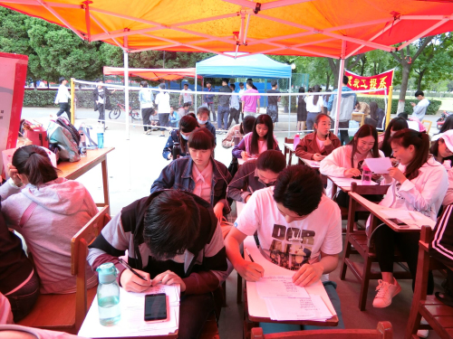 我系办公室人员负责签到,生活部人员保证后场工作人员的茶水供应及卫生工作;团宣的同学负责及时抓拍精彩比赛瞬间,定格运动场上同学们自信的身影;体育部的工作人员负责运动员检入工作;学艺部和文学中心的同学们正在不停地写着加油稿,这些加油稿通过主持人热情洋溢的宣读,给运动员带来大的支持。文学中心还在紧张的撰写运动快报和新闻稿,争取把场上的信息在第一时间传递出去。其他各部门也在积极认真地做着自己的工作,为运动会各方面奉献一份力量。
