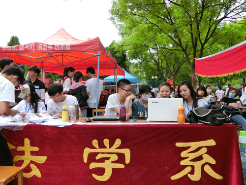 运动会正式开始前我系团学会全体成员就积极地进行筹备工作,在例会上,对每一个部门要负责的工作做出了详细的分工。运动会期间,我系团学成员就对文法系大本营进行精心布置,大家都争先参与其中,整齐悬挂条幅,并且有序摆放桌椅。