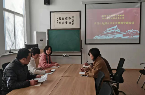 党支部书记赵静带领全体党员教师共同学习了党的十九届六中全会精神,提出希望大家能够在今后的工作中,坚持成果导向,把党史学习教育和教学工作结合起来,推动教育教学的改革。
