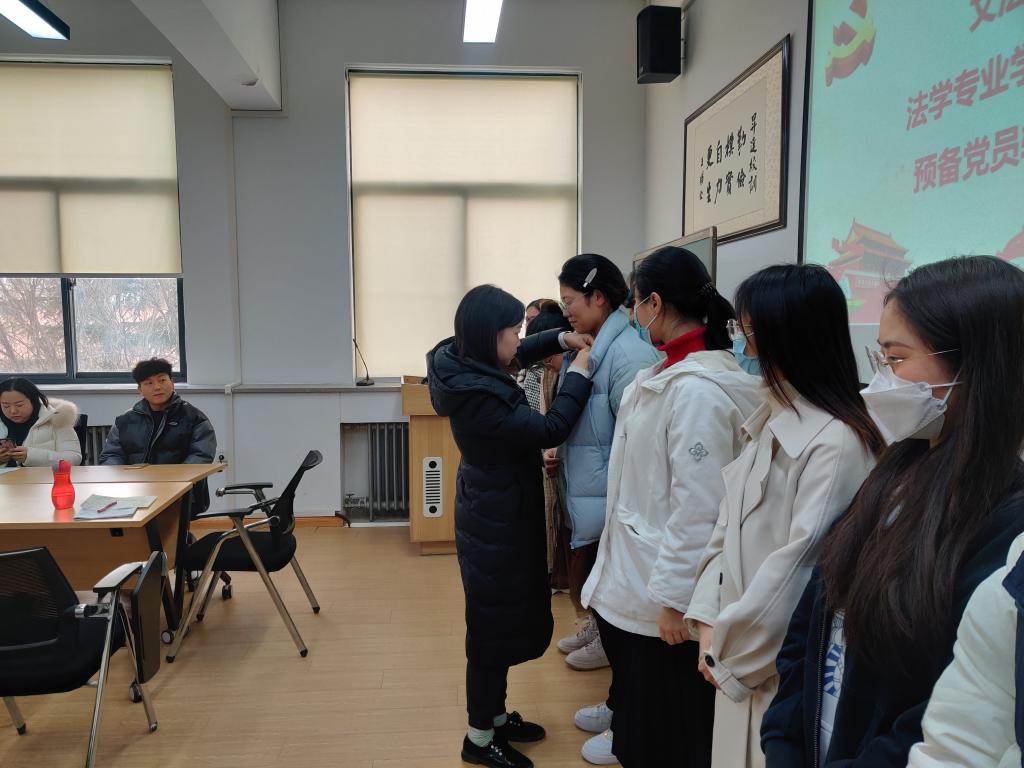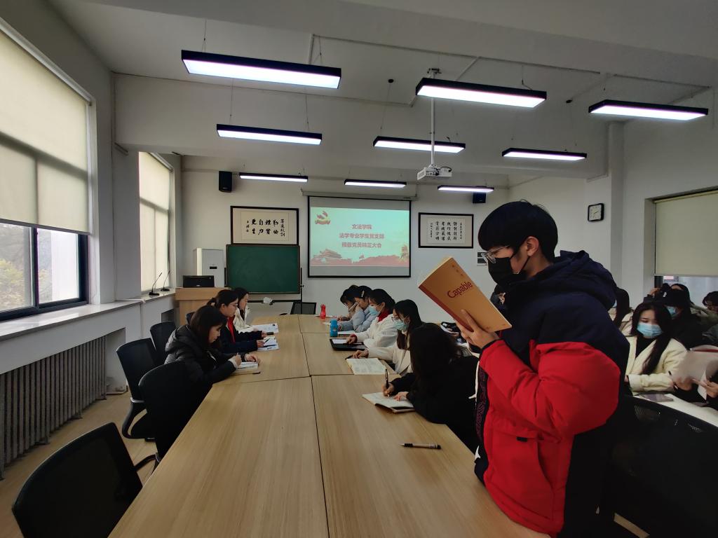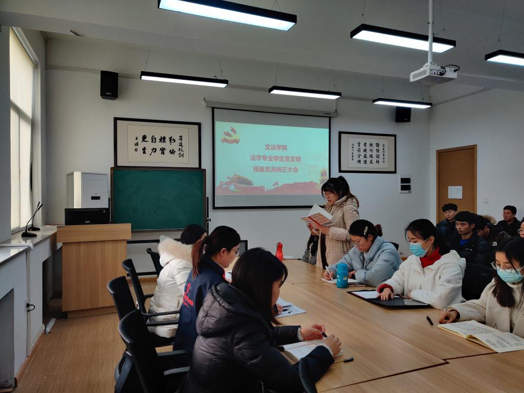 12月23日,文法学院法学专业学生党支部在1号教学楼314召开预备党员转正大会,会议由支部组织委员李玉杰老师主持,支部全体师生党员参加。