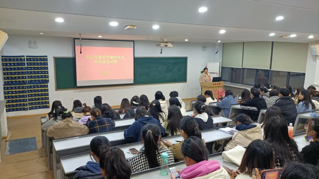 为提升校园文明程度,坚持物质文明和精神文明协调发展,以饱满的姿态迎接党的二十大胜利召开,文法学院于3月2日中午在教一楼109开展2022年“新郑市新时代文明实践活动周”红色电影观影活动。文法学院孟醒老师及大一到大三各班学生代表参加。孟醒老师主持本次活动。