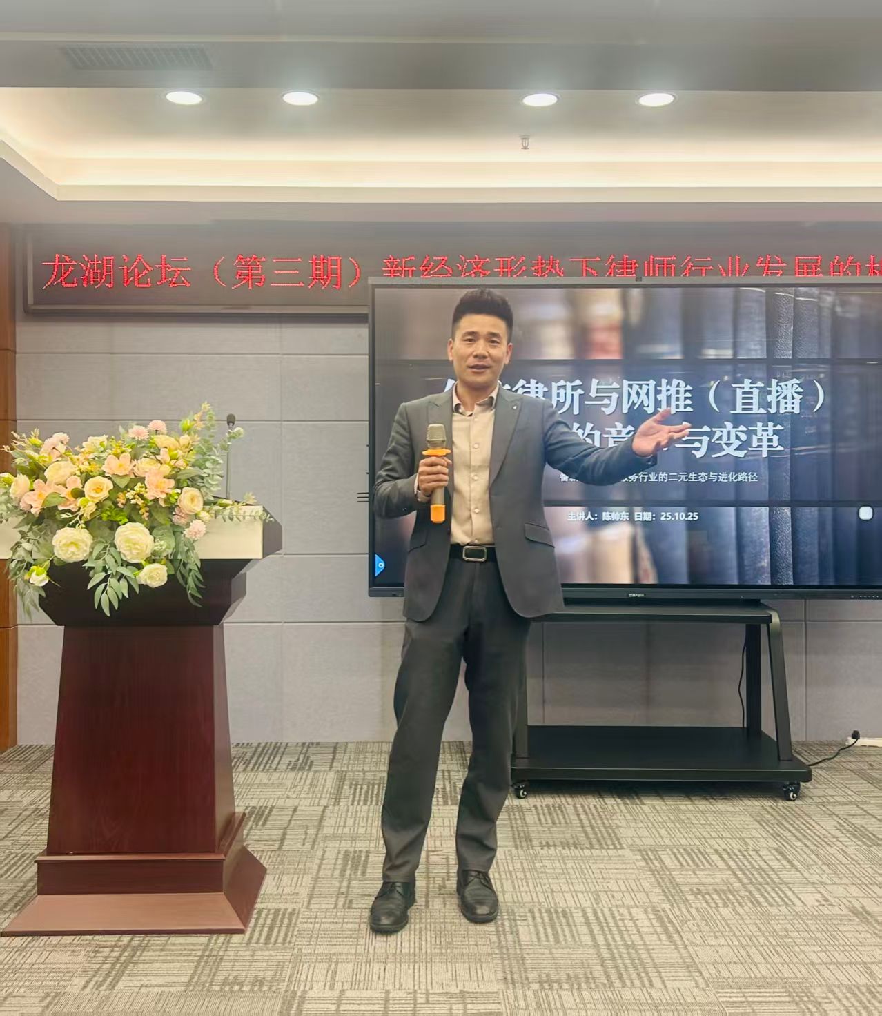 文法学院2017届校友、河南卿缘律师事务所合伙人陈帅东律师以《传统律所与网推(直播)律所的竞争与变革》为题,从行业变局、模式画像、市场生态等角度分享了网络时代律所发展面临的新挑战,并提出了应对策略与发展方向。