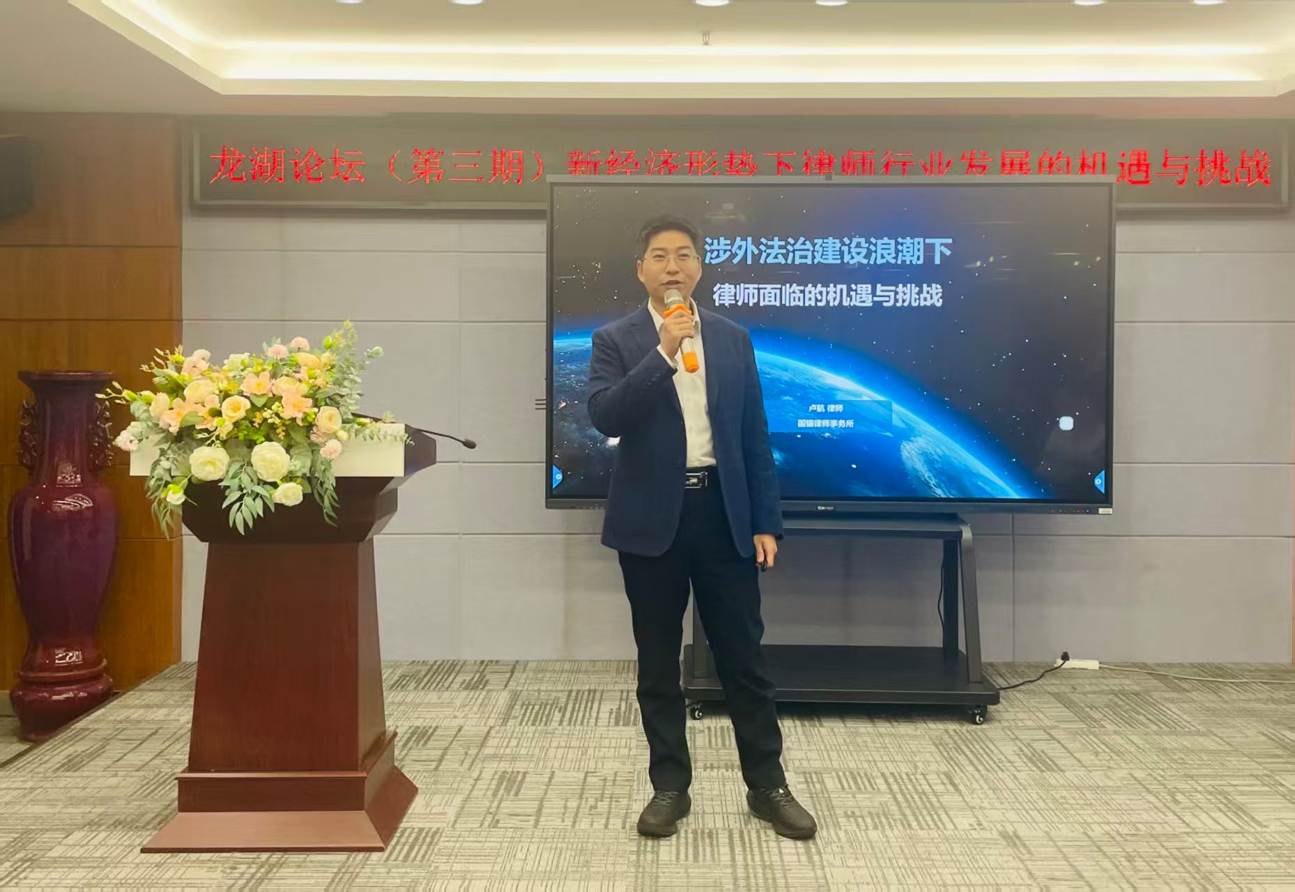 文法学院2013届校友、河南国银律师事务所卢航律师以《涉外法治建设浪潮下律师面临的机遇与挑战》为题,系统分享了涉外法治建设的背景与发展,分析了跨境业务的领域与范围,并探讨了涉外法律业务所面临的挑战与机遇。