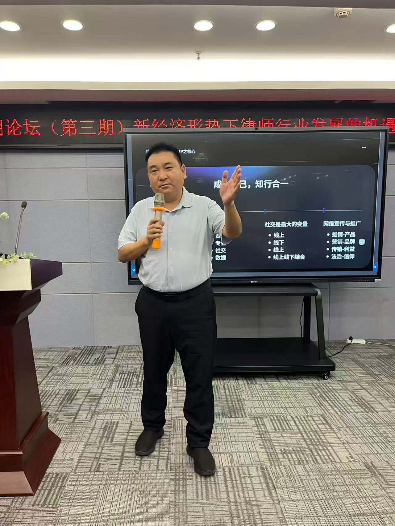 文法学院校外导师、河南鼎德律师事务所合伙人王辉律师以《律师个人IP打造及对业务的促进》为题,分享了当前依法治国背景下的行业发展趋势,并就个人IP与律所品牌的关系、个人IP打造的核心方法等方面提出专业建议。