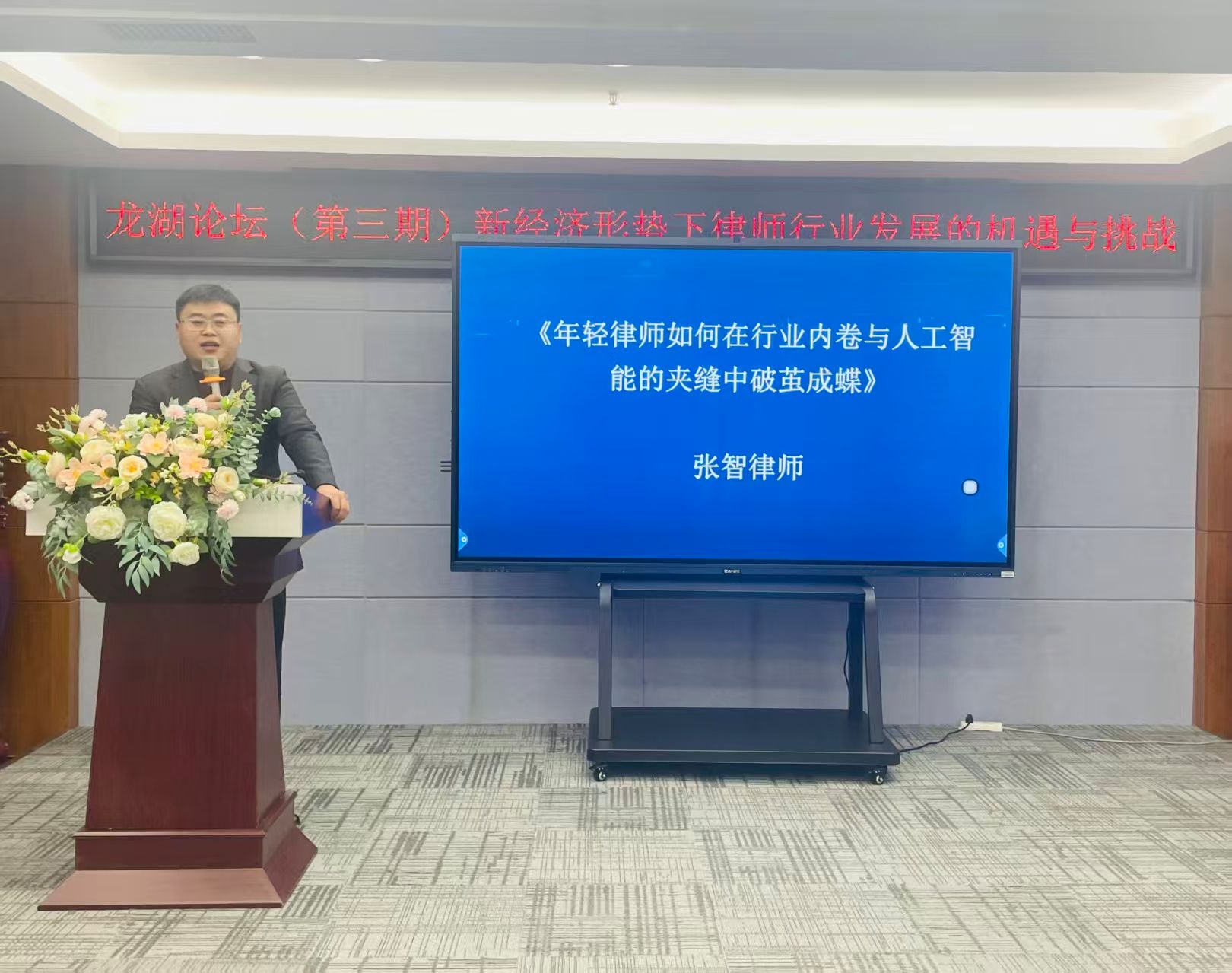 文法学院2018届校友、河南瀛豫(驻马店)律师事务所合伙人张智律师以《年轻律师如何在行业内卷与人工智能的夹缝中破茧成蝶》为题,结合丰富案例与行业经验,分享了当前律师行业生态,并为年轻律师在从业心态、专业定位及案源拓展等方面提供了切实可行的建议。